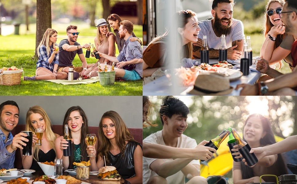 🎁【Party Favorite& Perfect Gift Options】The beer holder can be widely used at a party, at the beach or a barbeque, or camping adventures. For those who like to drink cold drinks, this insulator can cooler can be a perfect gift.