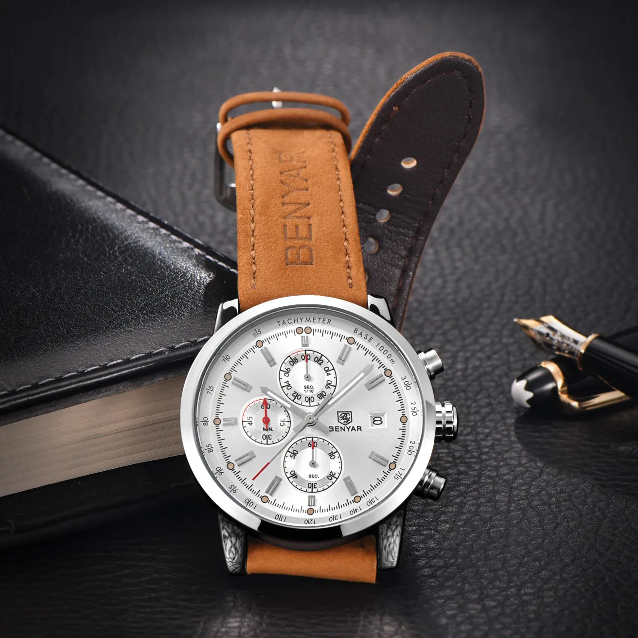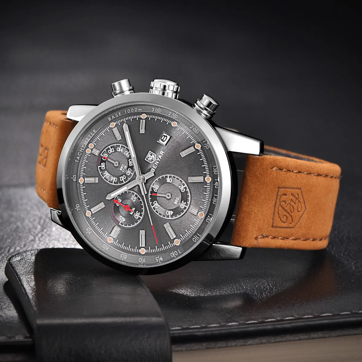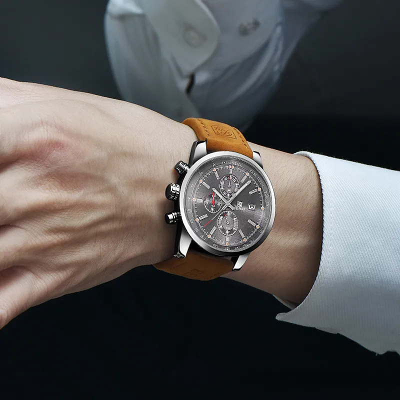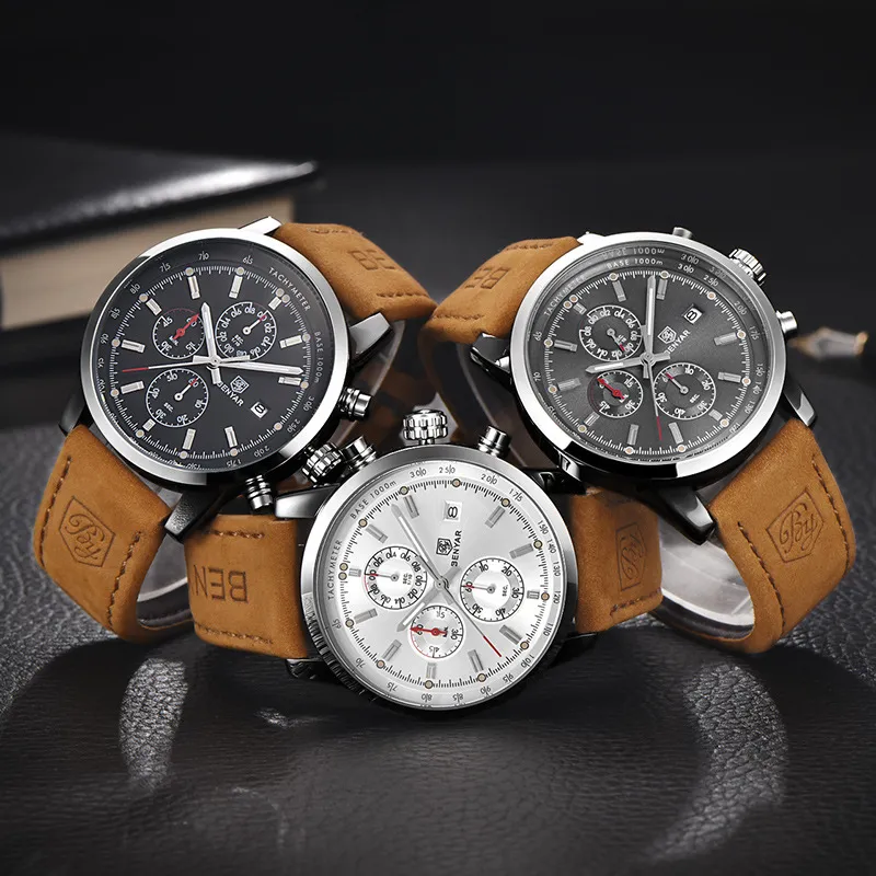 The BENYAR Benya Sports Three Eyed Watch is the perfect blend of style, function, and durability. Whether you're tracking your athletic performance, staying punctual, or adding a bold accessory to your wardrobe, this watch has everything you need. The stylish chronograph design, durable construction, and comfortable leather strap make it a great choice for those looking for a reliable and fashionable watch.