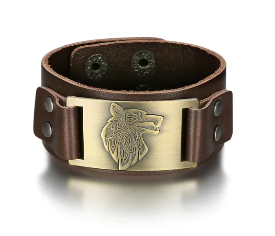 Beowulf Regalia Leather Viking Wolf Head Arm Cuff