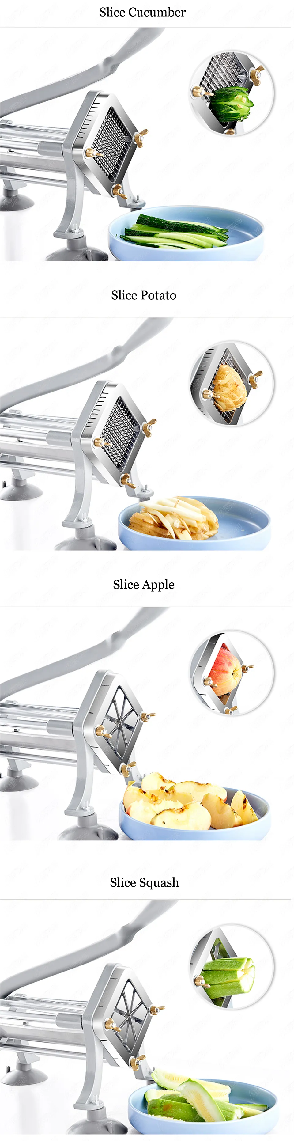 Best Selling Potato Chips Potato French Fry Cutter Aluminum Alloy Body Stainless Steel Blade