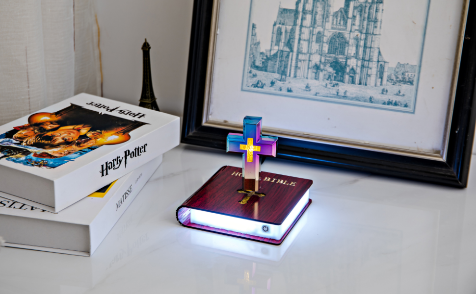 - SEVEN-COLOR GRADIENT COLOR LIGHT: The base is themed on the Bible and uses RGB tri-color dimming technology. When the light is on, it is able to present a variety of brilliant colors, just like the end of a rainbow, exuding a fascinating luster. These colors intertwine as if telling a beautiful and sacred story.