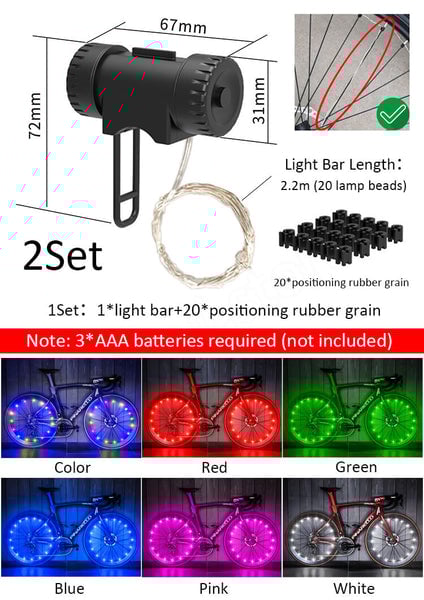 Includes 2 light bars to fit the front and rear wheels of one bike, and the positioning gel ensures that the light bars won't slide off. DIY whatever shape you like, such as love, stars, etc