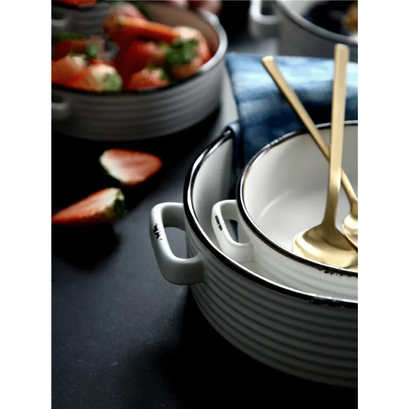 The unique binaural (two-handled) design of this bowl provides added convenience and ease of use. The two handles make it easy to hold and serve, especially when the bowl is filled with hot soup or food. Whether you're carrying it from the kitchen to the dining table or serving food directly to guests, the handles provide a secure and comfortable grip, reducing the risk of spills or accidents.