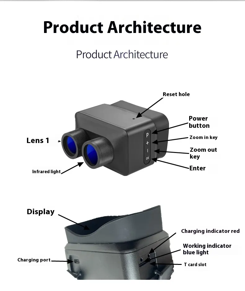 Unleash the power of cutting-edge night vision technology with the Binocular Infrared Digital Night Vision Instrument. Designed for outdoor enthusiasts, hunters, security personnel, and adventurers, this advanced device delivers crystal-clear imaging even in complete darkness. With high-definition shooting and infrared detection, it's your ultimate tool for nighttime exploration and surveillance.