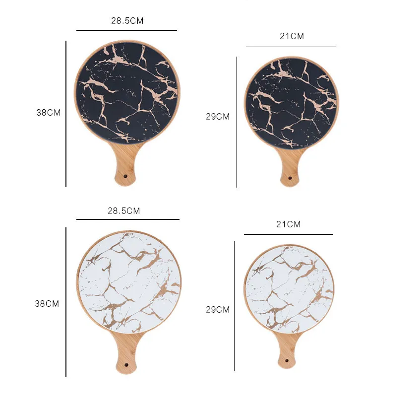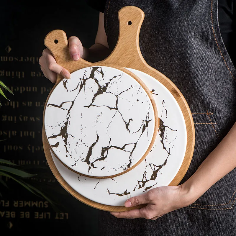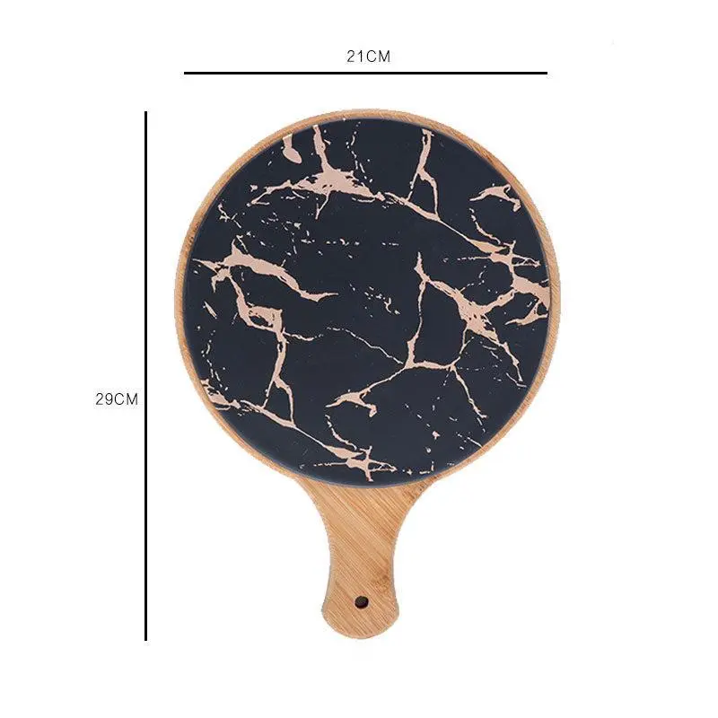 Black Ceramic Round Wooden Tray With Handle