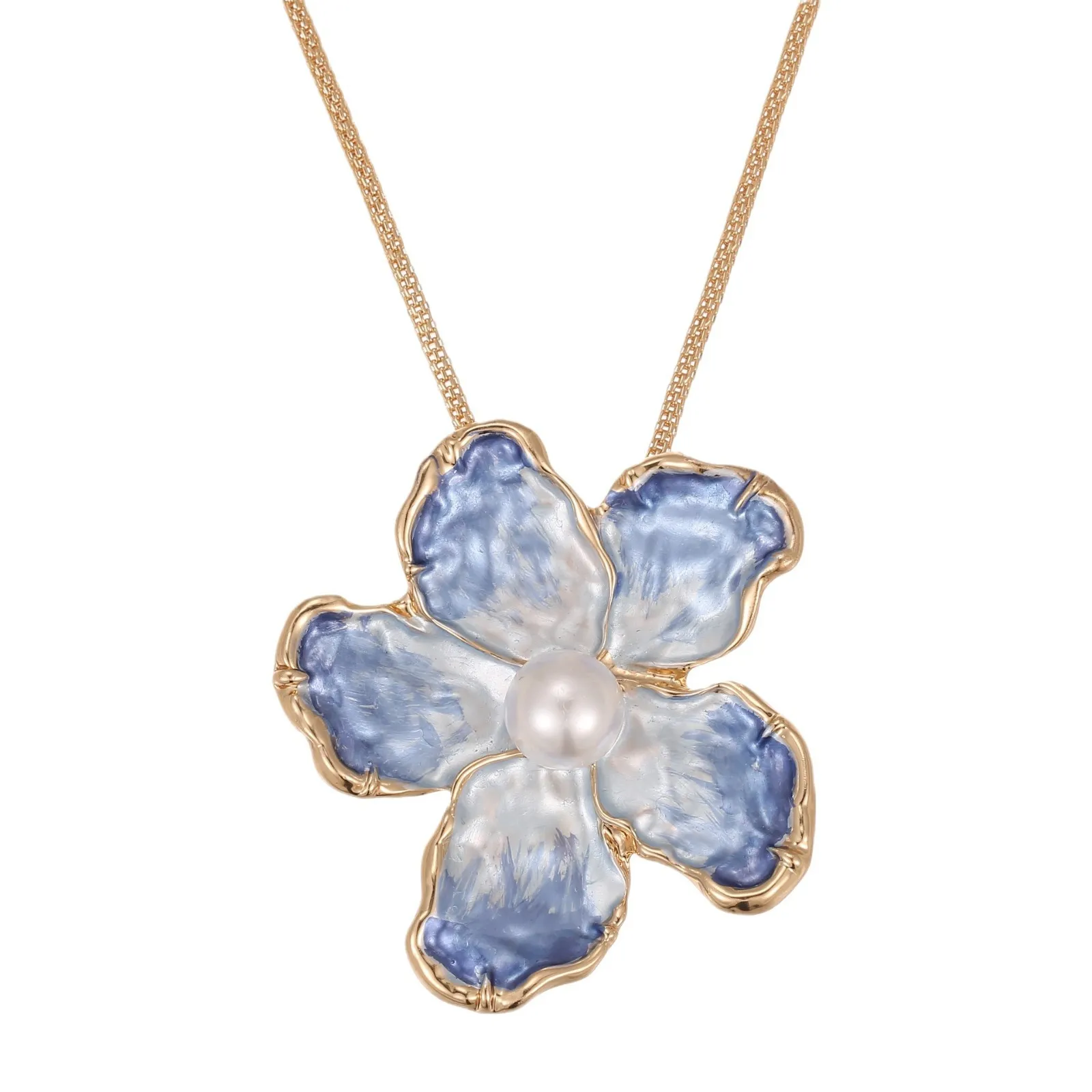 Blue Enamel Camellia Pendant Fashion