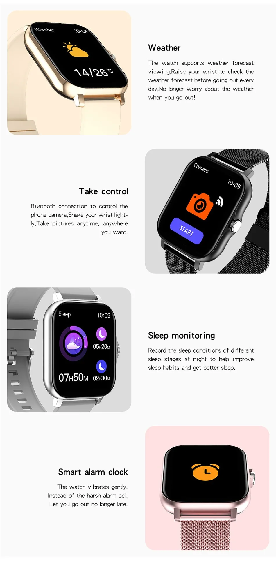 Additional functions: step counting, monitoring, social entertainment, smart reminder, remote selfie, health monitoring, information push,