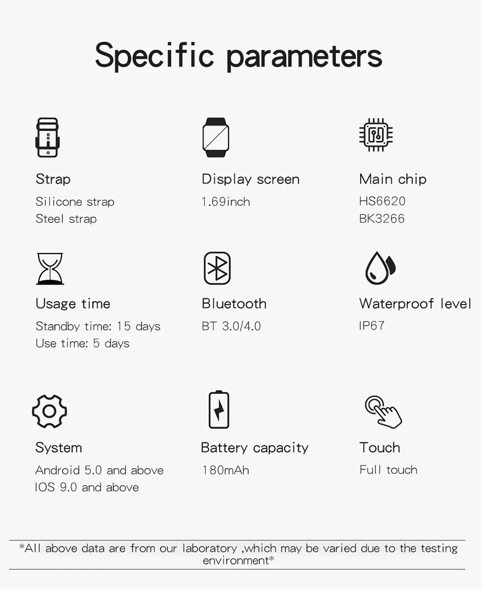Function: waterproof, audio and video entertainment, step counting, heart rate monitoring, bluetooth call, smart reminder, remote control
