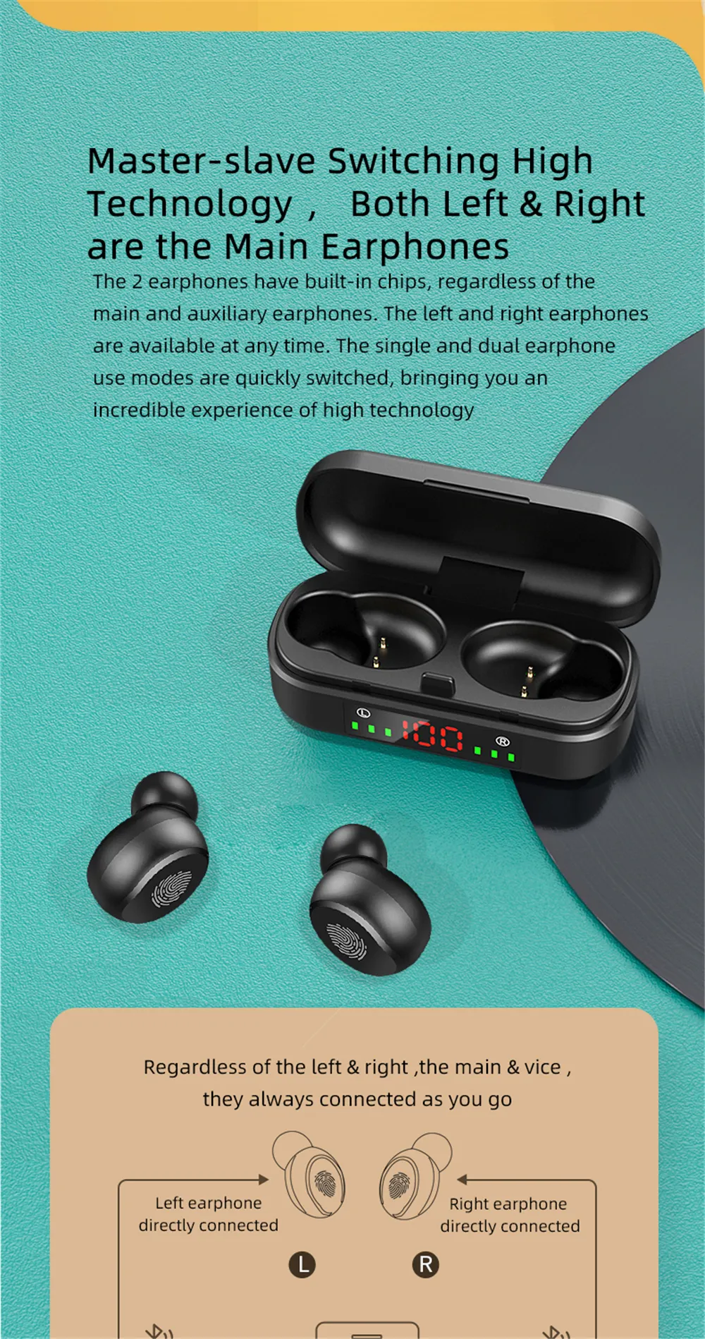 Function: battery display, voice control, call function, support music, multi-point connection