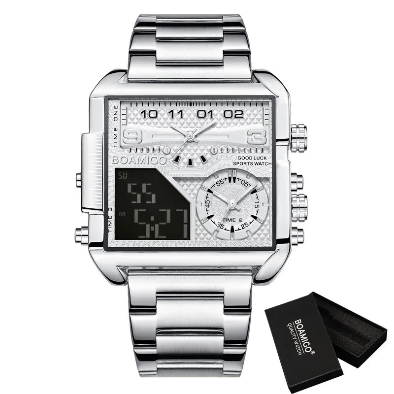 BOAMIGO New Top Brand Luxury Fashion Men Watches Gold Stainless Steel Sport Square Digital Analog Big Quartz Watch for Men