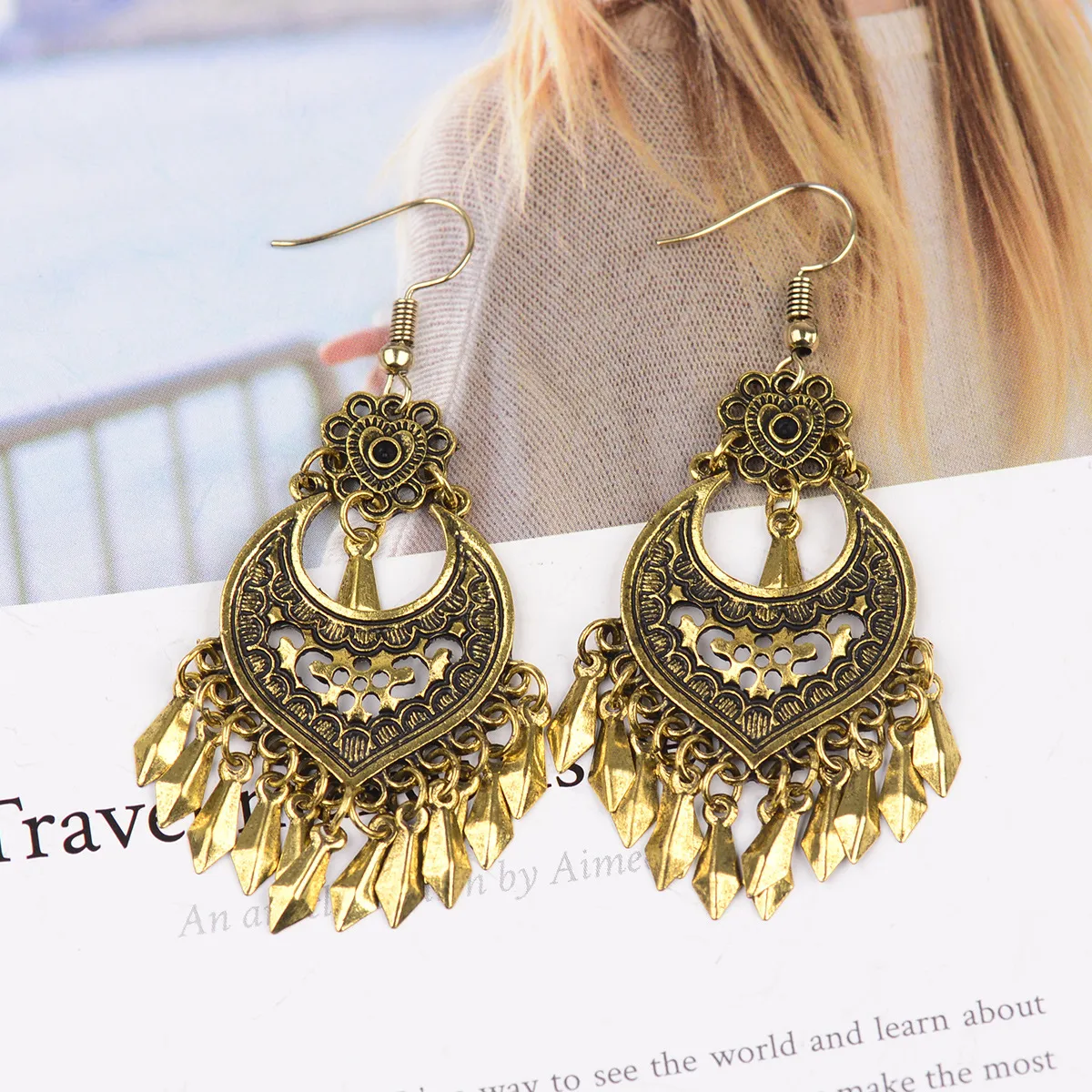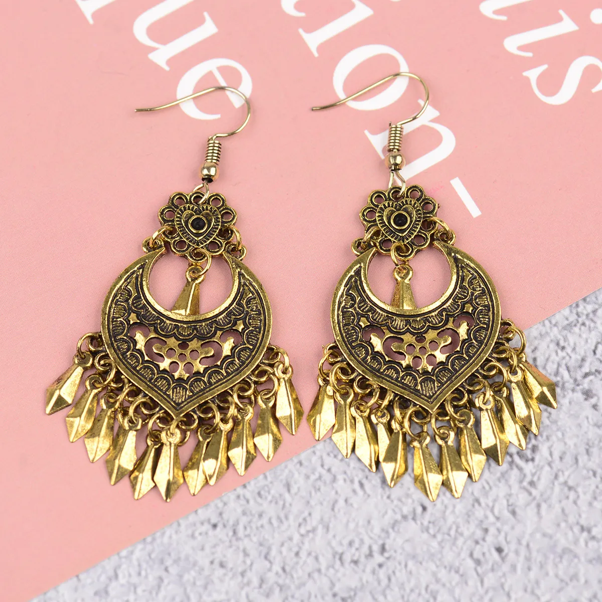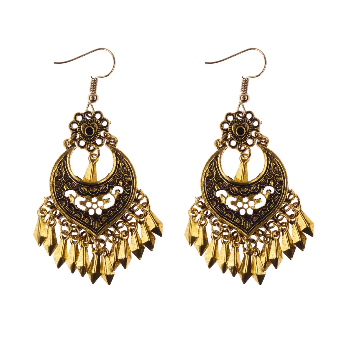 Bohemian Retro Royal Court Style Nepal Exotic Ethnic Characteristics Distressed Ancient Gold Earrings