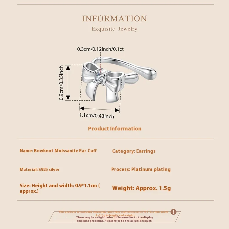 Bow Ear Clip 925 Sterling Silver