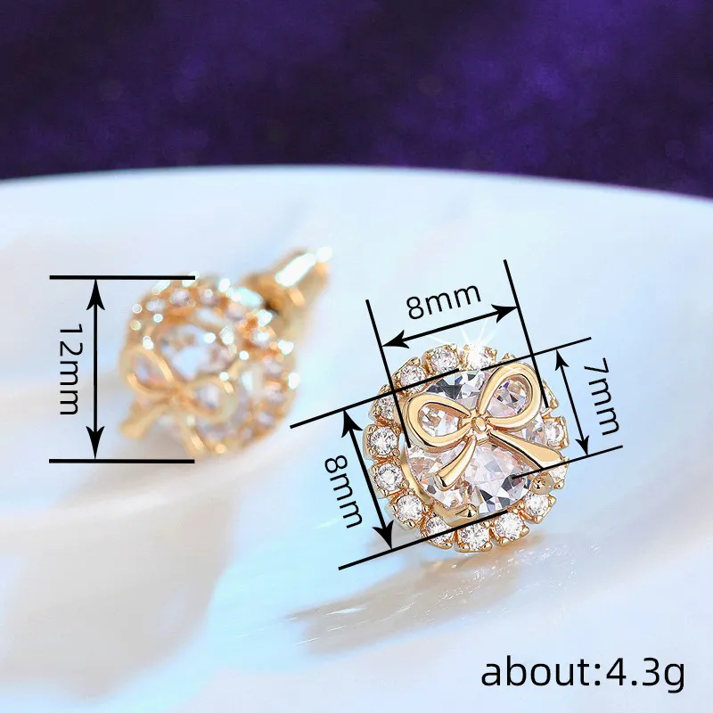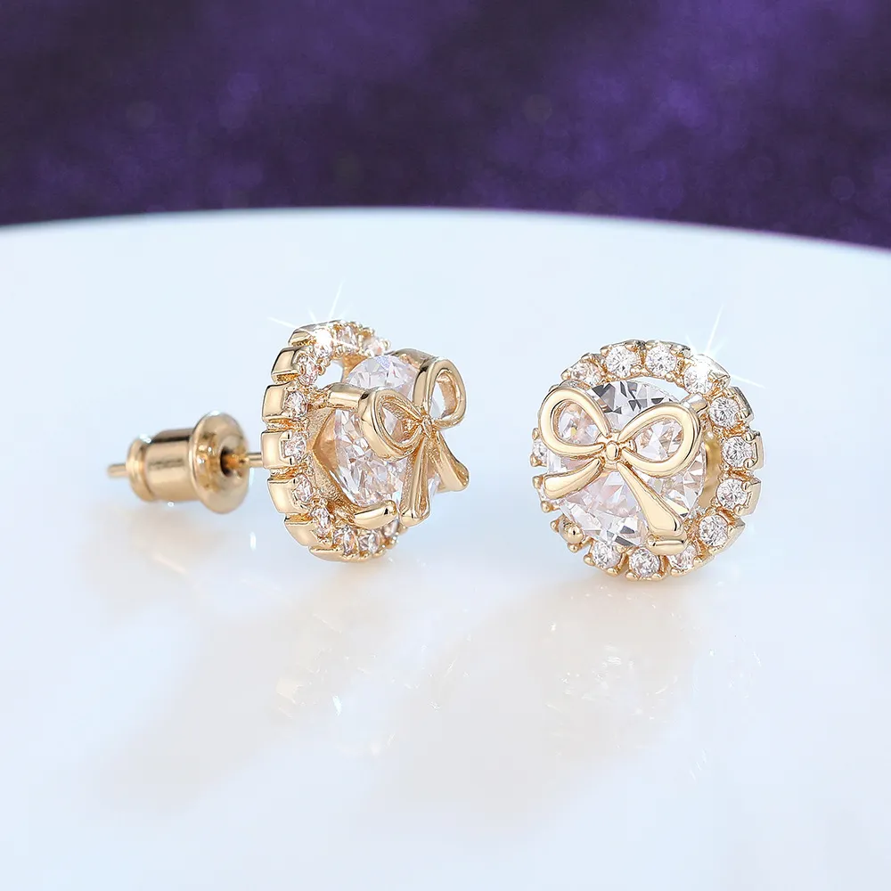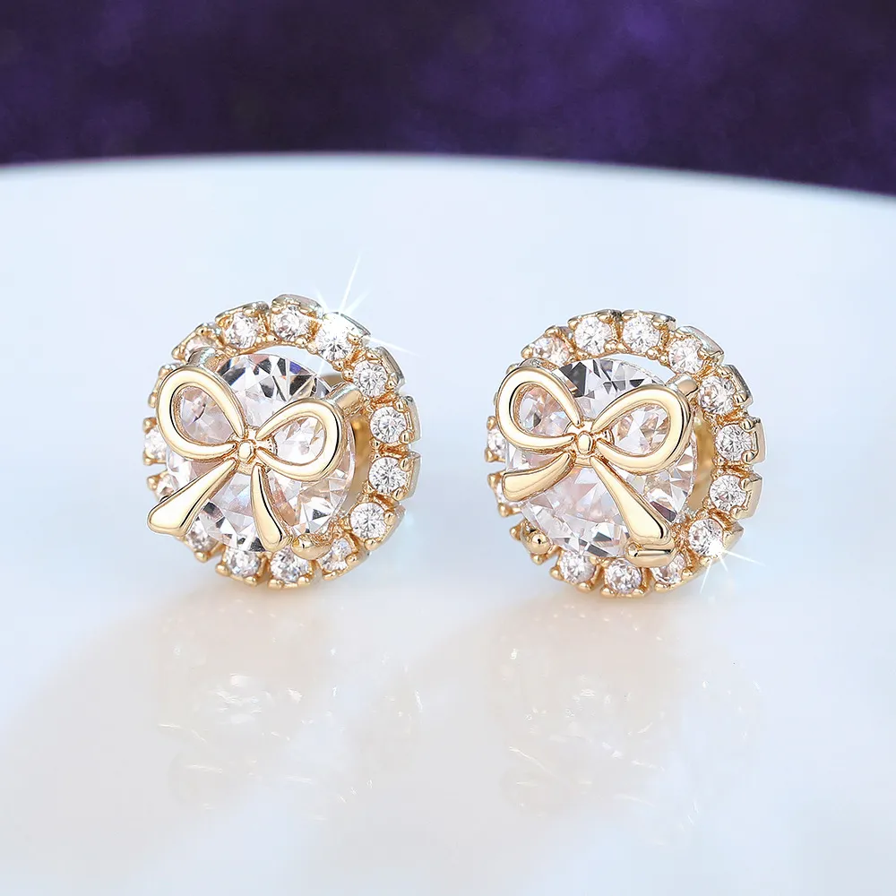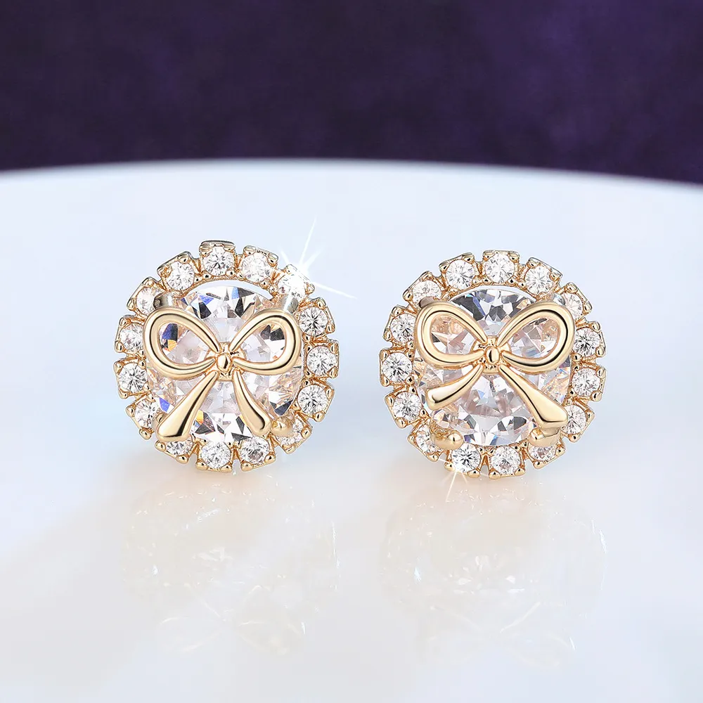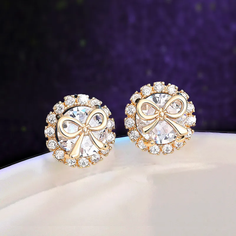 Bow Stud Earrings Sweet Accessory Micro Inlaid Zircon