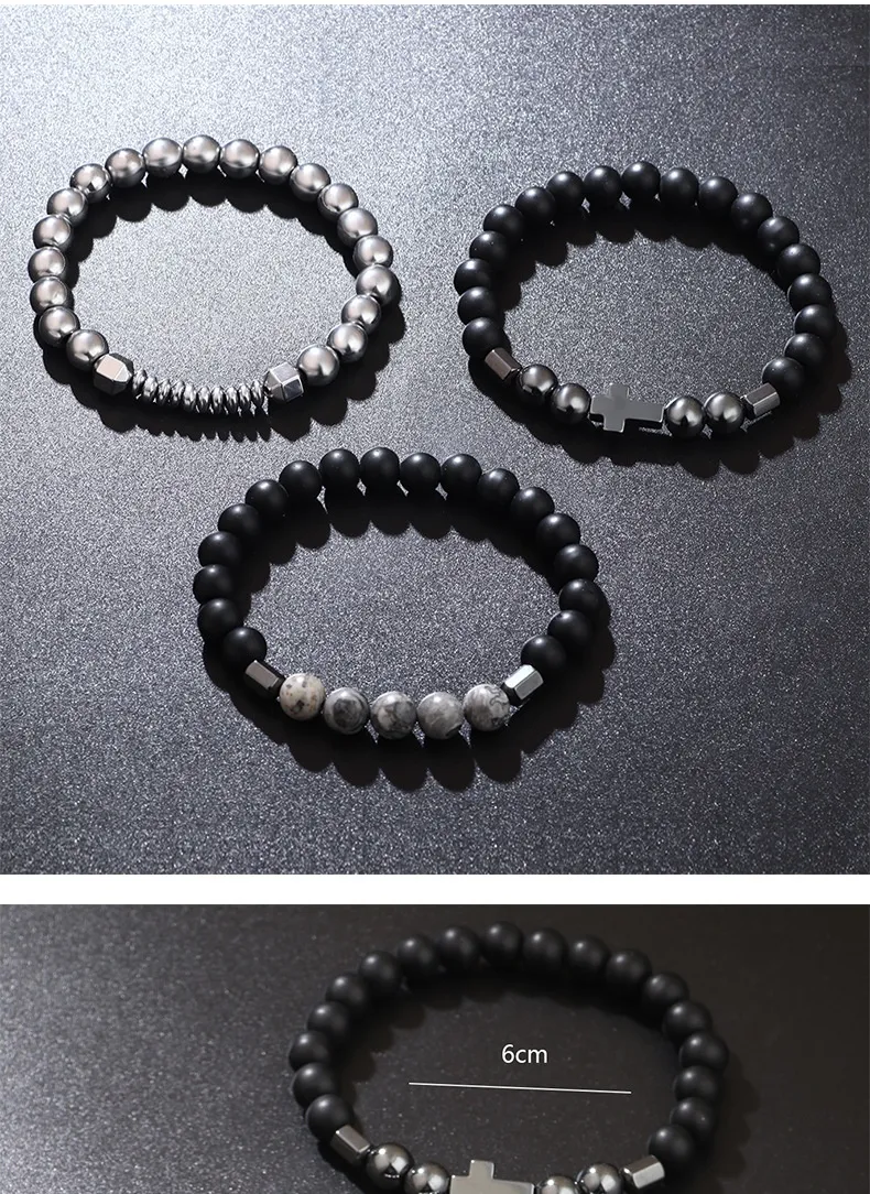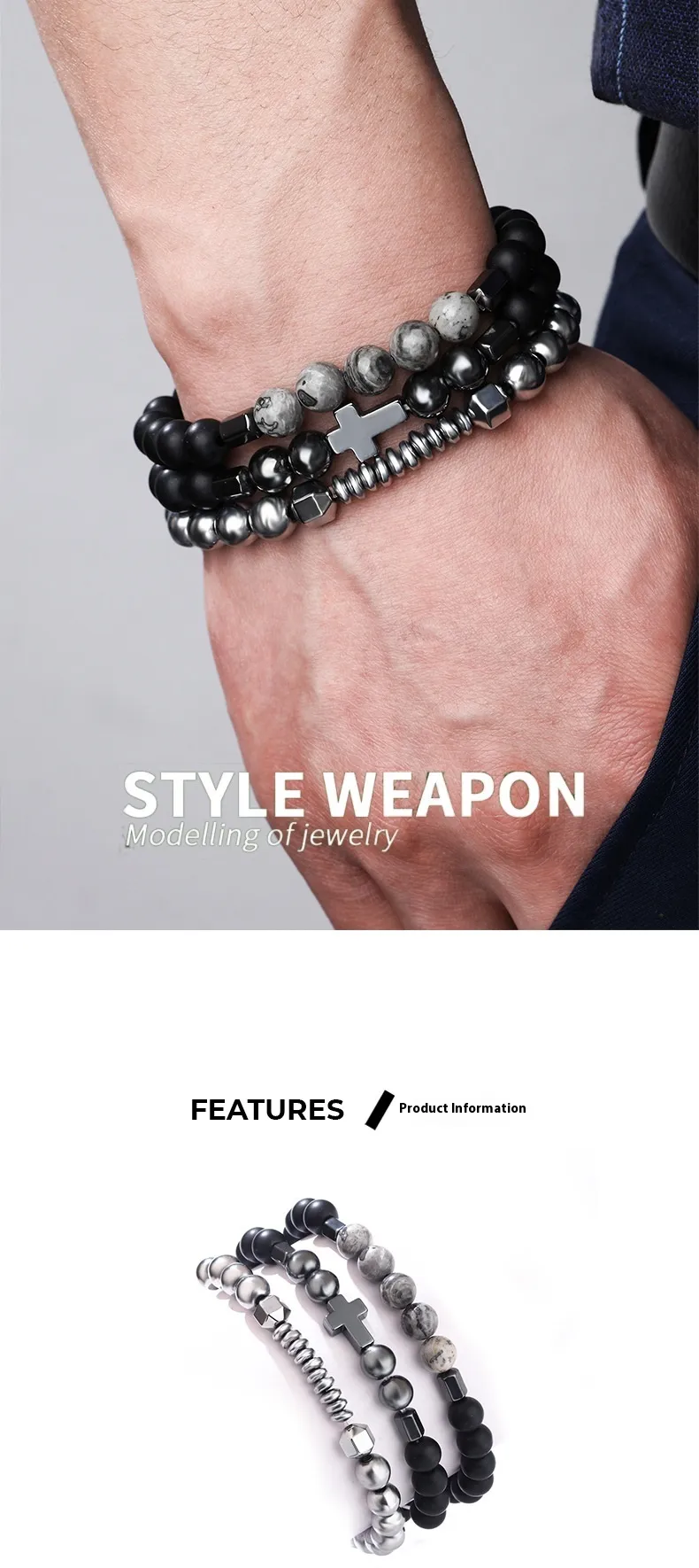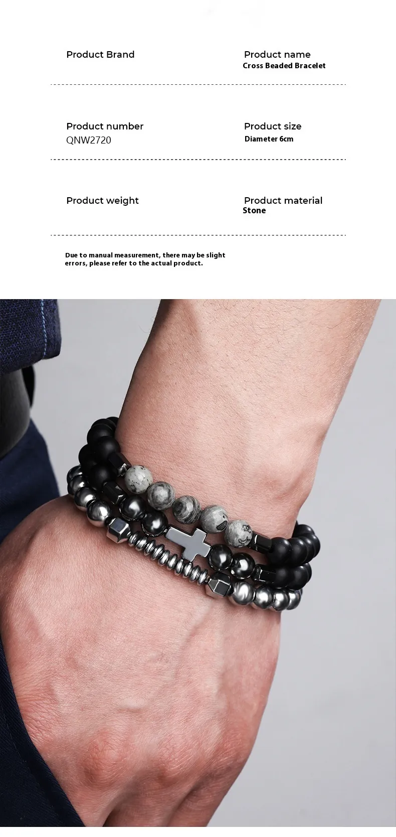 Bracelet UFO Cross Haematite Retro Bracelet Map Stone Elastic String Bracelet