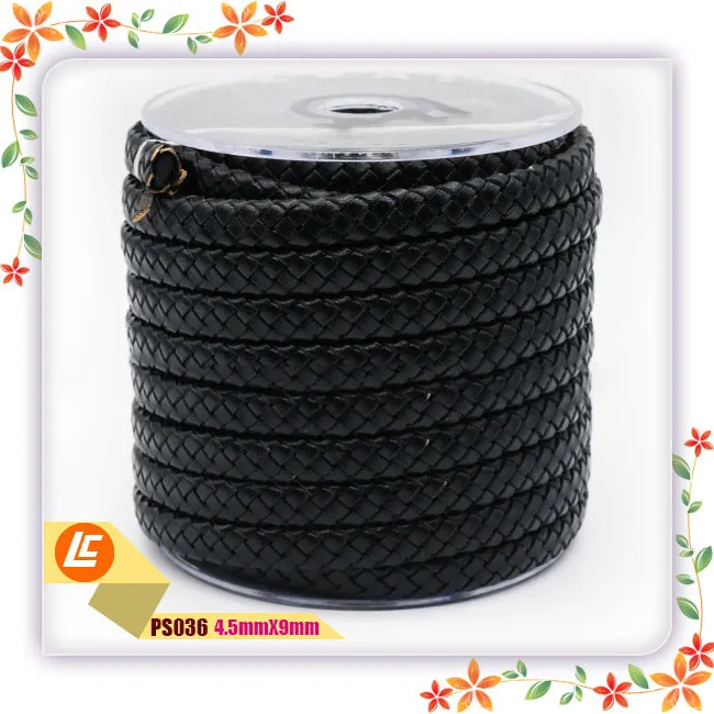 Product Name: 4.5mm*9mm black leather flat braided cowhide rope