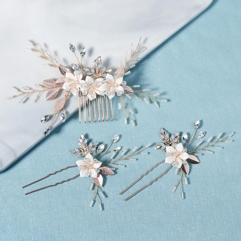 Bridal Jewelry Photography Photo Hair Accessories Flower Rhinestones Comb Handmade U-shaped