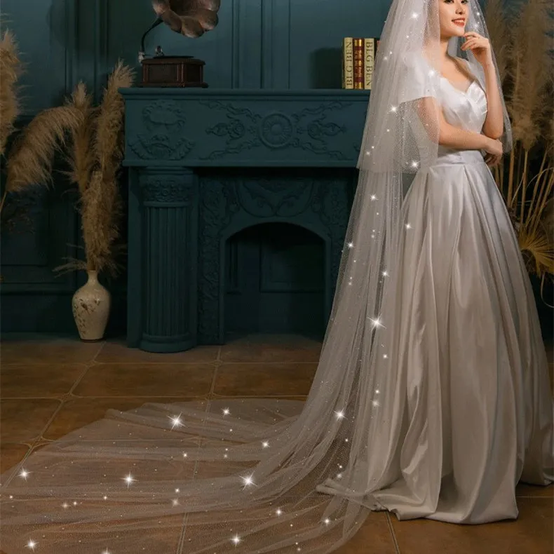 The simplicity and elegance of this headdress ensure that it pairs well with a wide range of bridal styles, from classic to modern. Whether you’re wearing a traditional ball gown, a sleek mermaid dress, or a romantic lace wedding dress, this veil with pearl detailing enhances your overall look with grace and beauty. Its versatile design makes it suitable for various wedding themes, from vintage to contemporary, ensuring it complements your unique style.