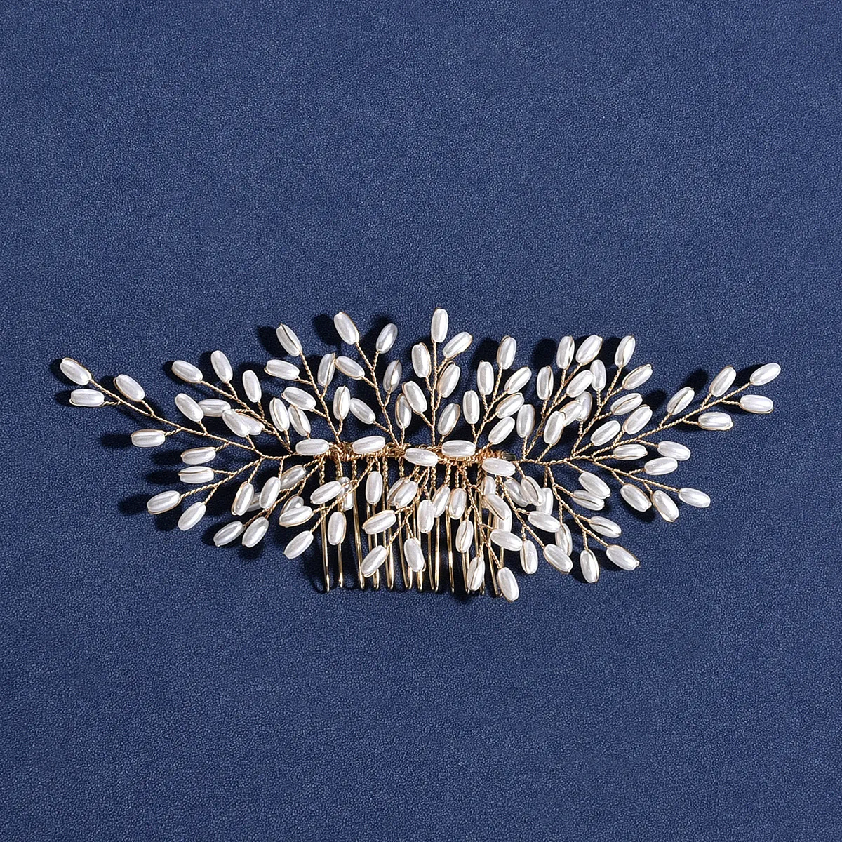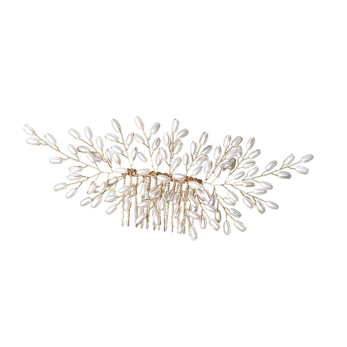 This headdress is entirely handmade by skilled artisans, ensuring that each piece is crafted with the utmost attention to detail and quality. The combination of the wheat design and pearls is carefully executed to create a one-of-a-kind accessory that adds unique beauty to your bridal look. The handcrafted nature of the comb ensures that you receive a personal and high-quality piece that will stand out on your wedding day.