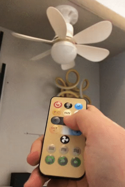 Simply remove the bulb out of the socket, screw in the fan light, press the remote, and instantly you're enjoying cool air!