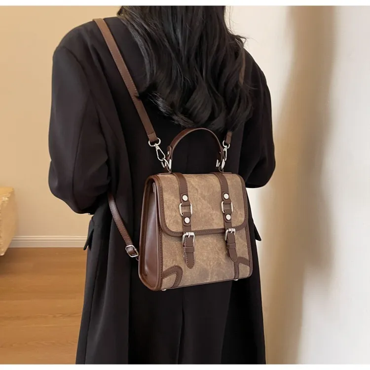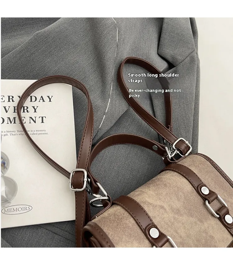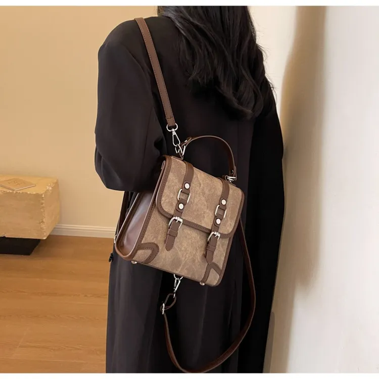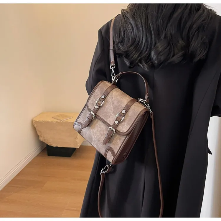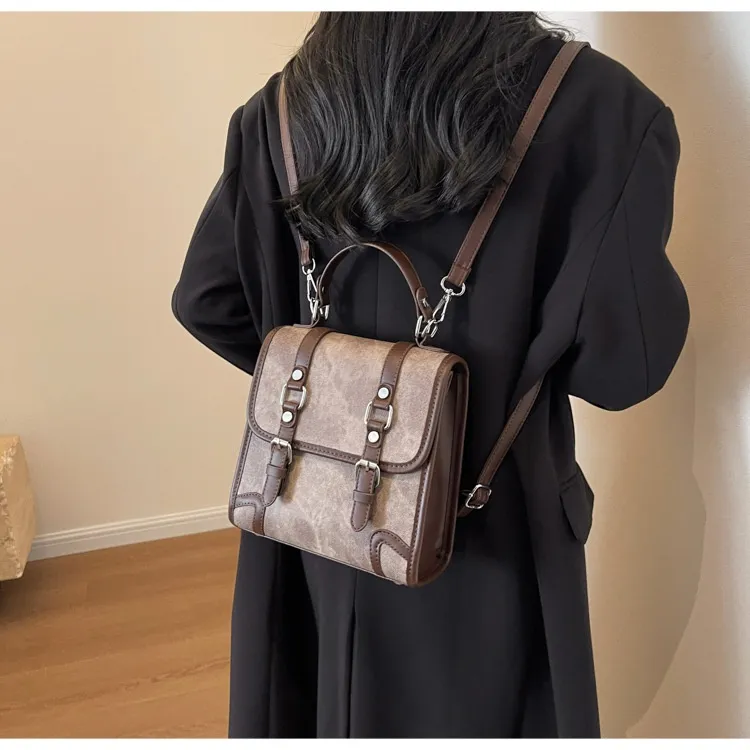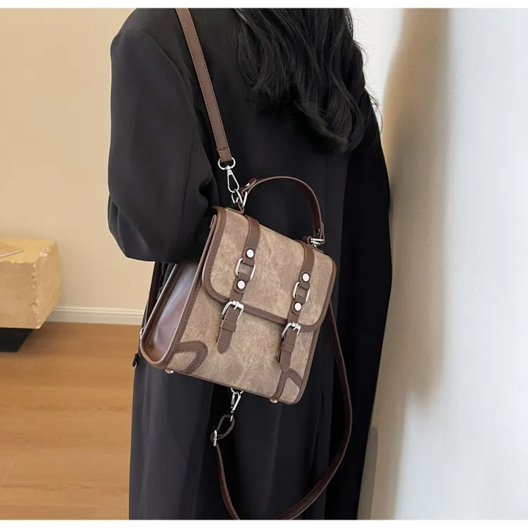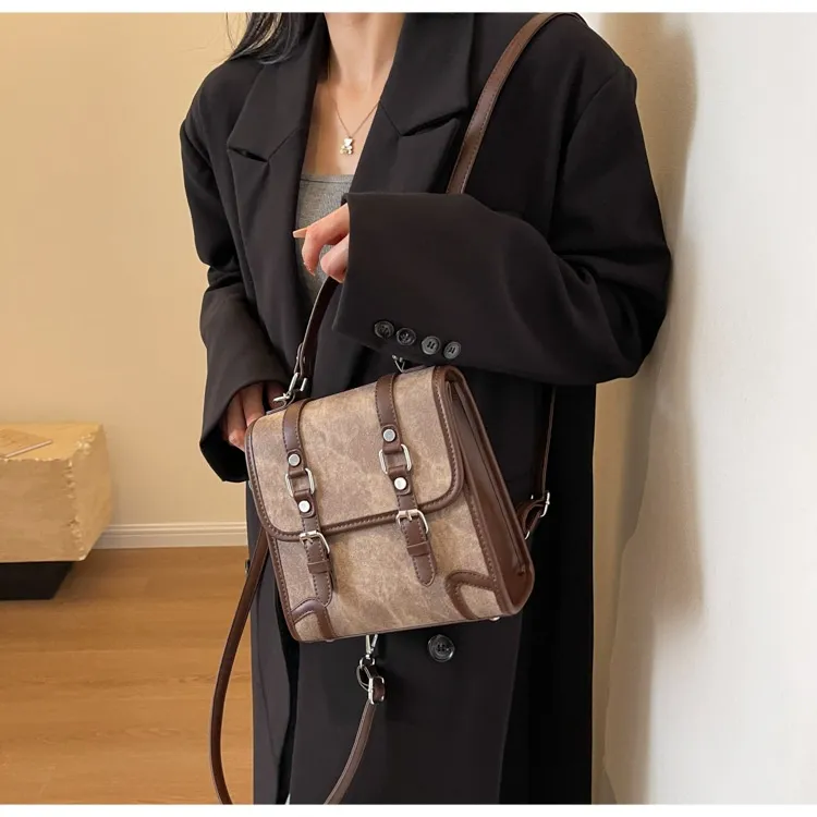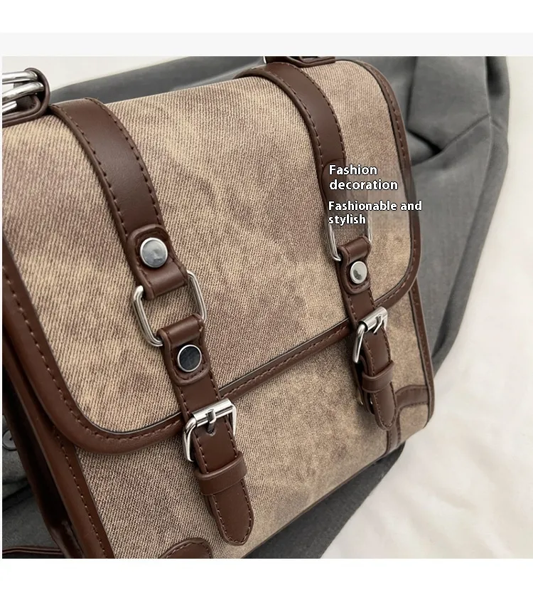 - Retro design: Vintage-inspired look with leather details and buckle accents.