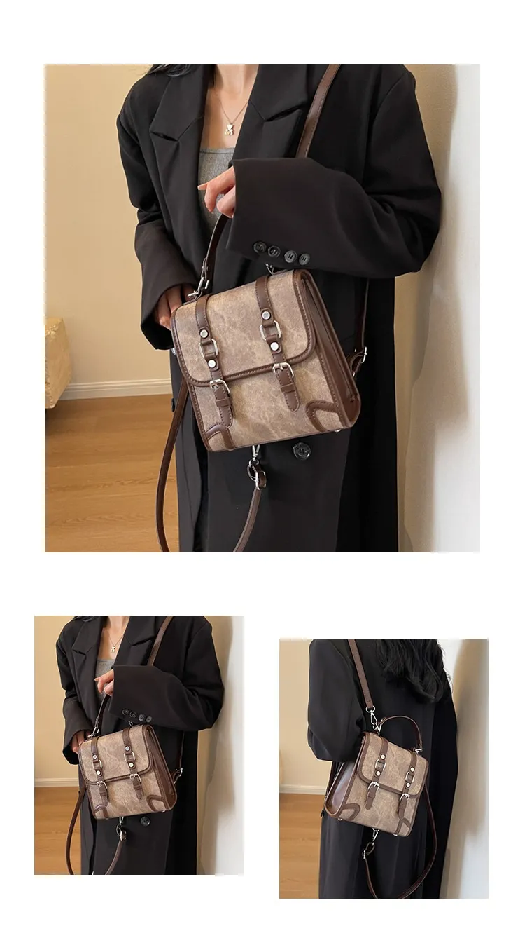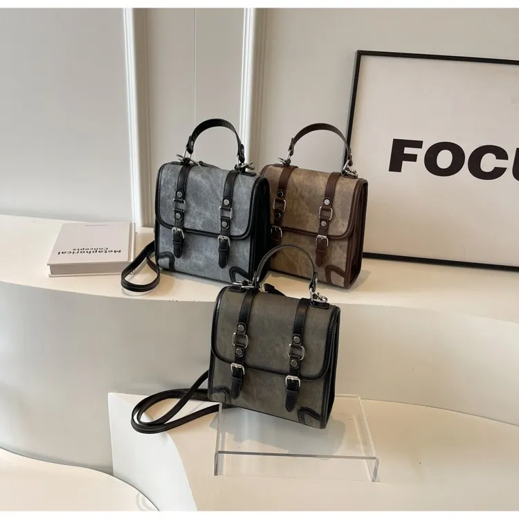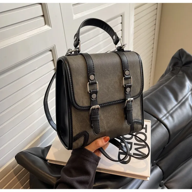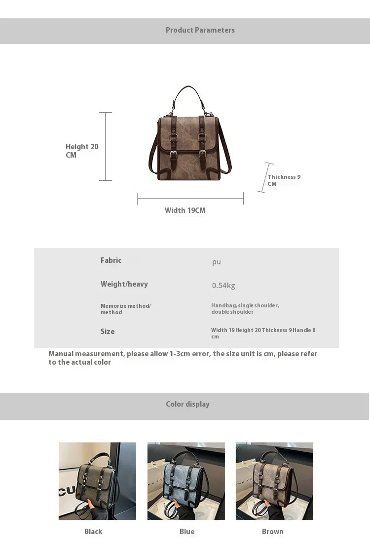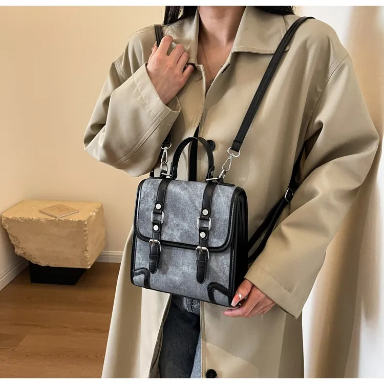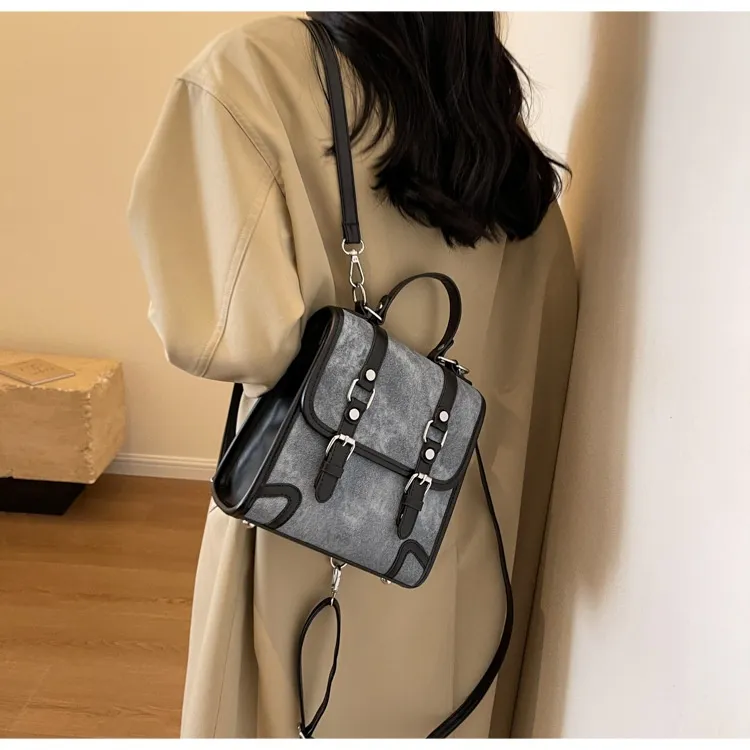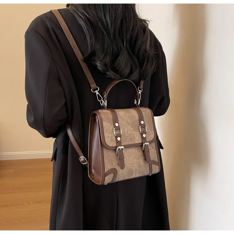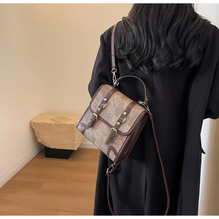 - Retro design: Vintage-inspired look with leather details and buckle accents.