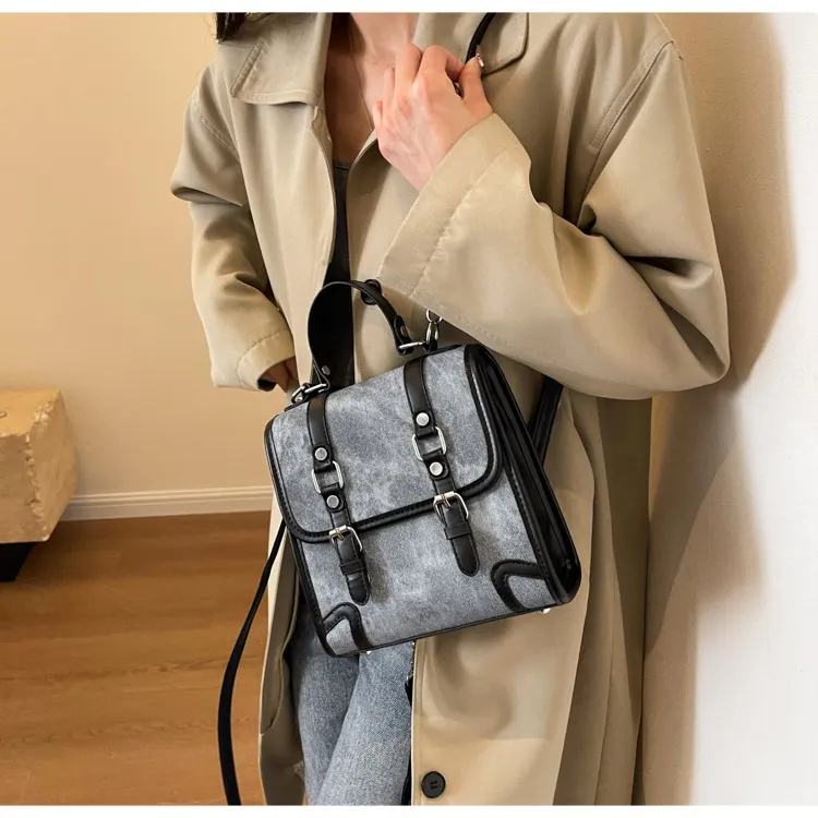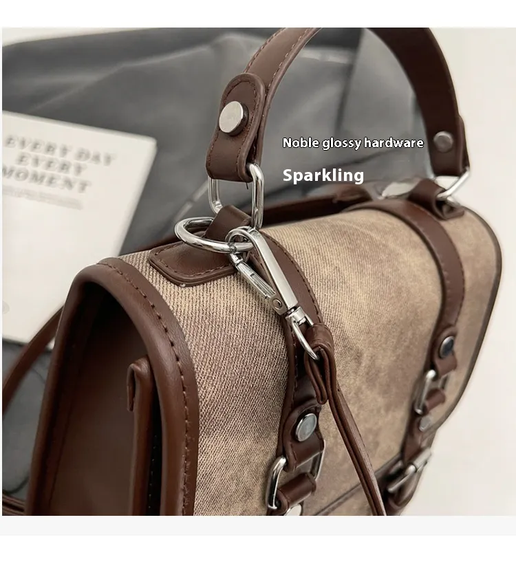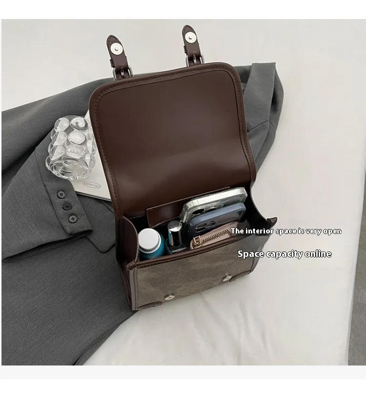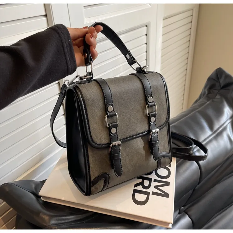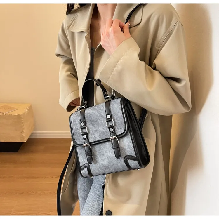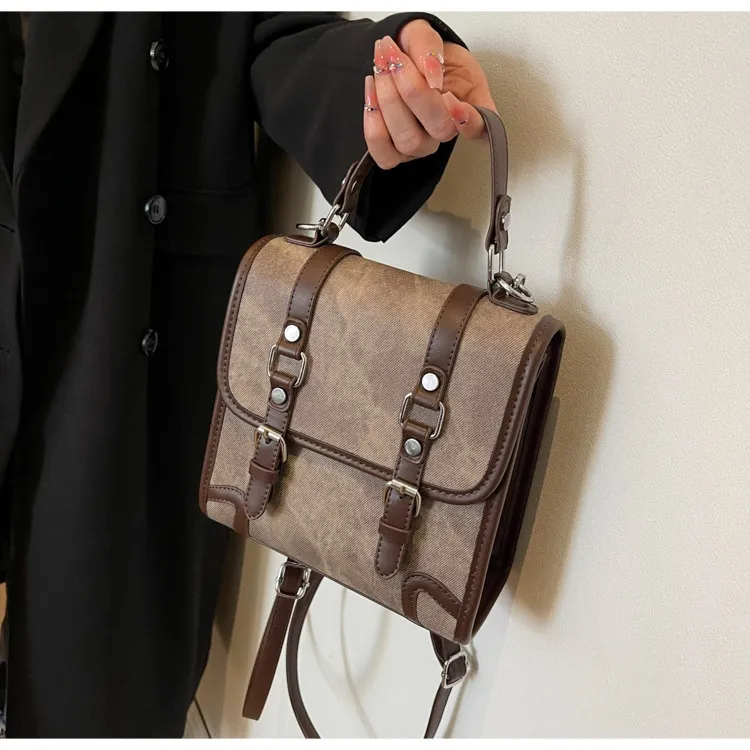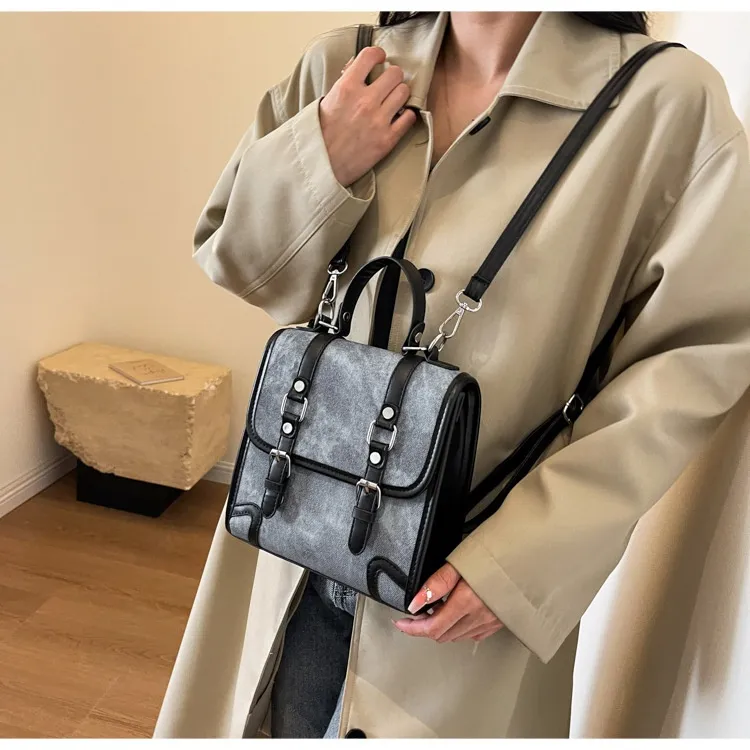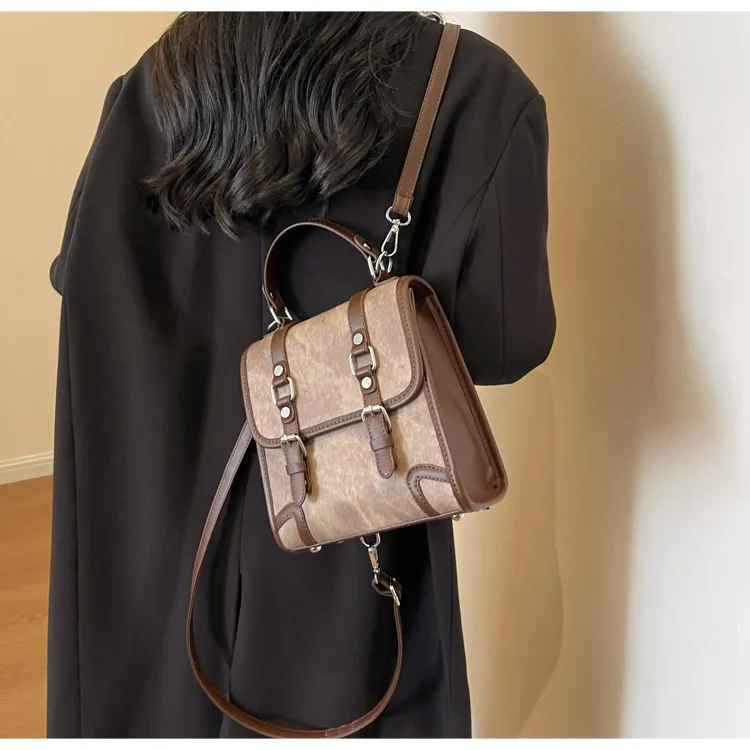 - Retro design: Vintage-inspired look with leather details and buckle accents.