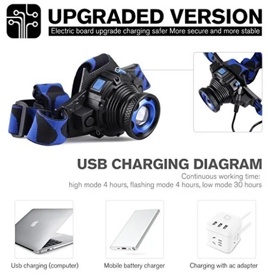Built-in Polymer Rechargeable LED Headlamp Portable Head-mounted Focusing Outdoor Cycling Camping Major Headlamp