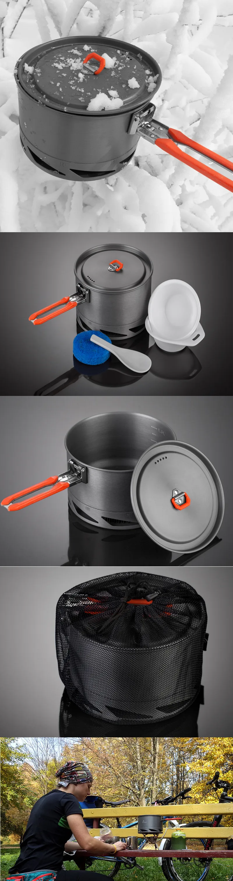 Camping Utensils Dishes Cookware Set For Picnic Hiking Heat Exchanger Pot Kettle Outdoor Tourism Tableware Heat Collecting Hard Alumina