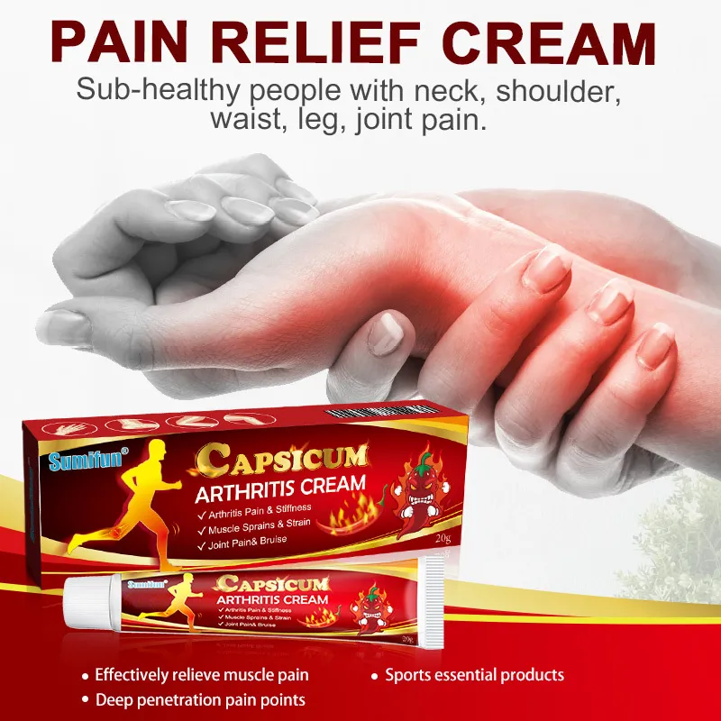 Find fast relief from joint and muscle pain with 20g Chili Membrana Synovialis Cream. Alleviates discomfort in neck, shoulders, waist, and legs with a soothing warming effect.