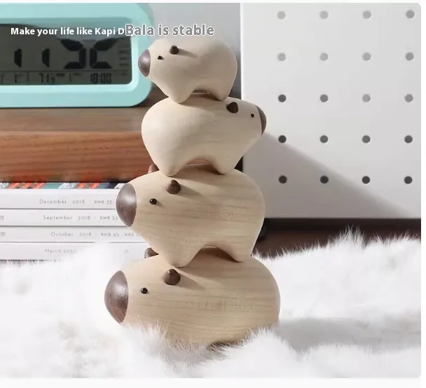 Add Fun and Whimsy with the Capybara Jenga Wood Carving Desktop Decoration