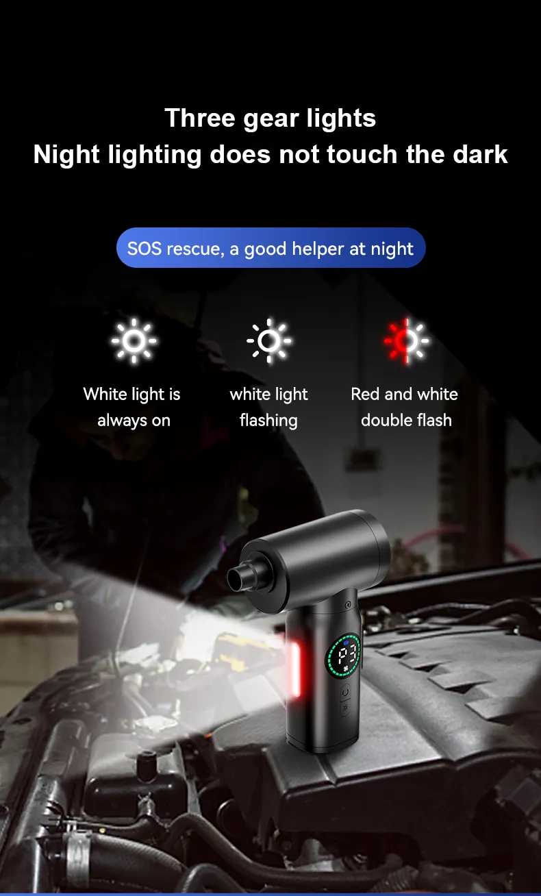 The Car Dust Blower delivers strong, focused air bursts that dislodge dust and particles trapped in tight spaces. Its powerful airflow reaches areas where traditional cleaning tools struggle, ensuring your car’s interior stays spotless.