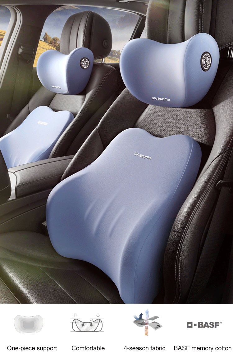 - 【Comfortable Lumbar Support Pillow】The car headrest and back cushion are made of high-quality memory foam, which combines softness and support. The hugging waist support features a sloping design that gently supports and wraps the waist, perfectly filling the gap between the lower back and the seat. The driver's lumbar support pillow provides relaxation for those who are tired from driving.