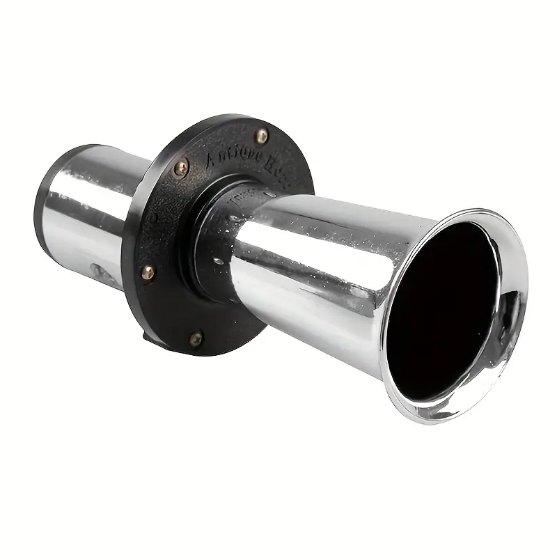 Specifications: * Brand new, high-quality vintage cow horn with excellent sound * Operating voltage: 12V * Sound intensity: 110dB * Frequency: 490Hz * Sturdy design with simple one-bolt installation * Driven by a robust motor for loud sound output * Classic cow horn evokes nostalgic memories * Produces the best and clearest vintage cow sound, OO-GA! OO-GA! * Compatibility: Fits all 12V vehicles, including cars, vans, and boats. * Compatible with standard +12 Volt D.C. electrical systems * Dimensions: 4 1/2" in diameter and 9" in length.
