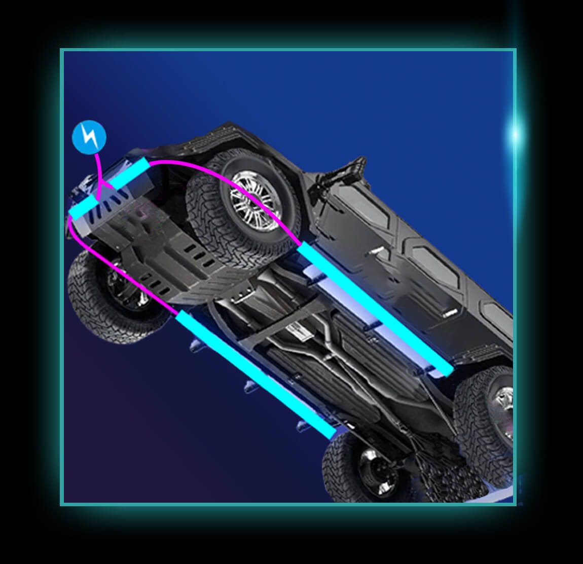 EASY INSTALLATION - Equipped with four LED bars, the under car light covers all four sides of your car's underbody to keep it fully illuminated. All that you have to do to install the car underglow is to wipe down your car's underbody, stick the LED lights on a dry place, and connect all the cables together.