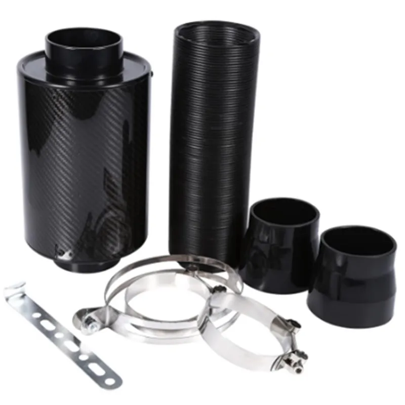 2* variable diameter adapter rubber sleeves, 2* stainless steel clamps, 1 *extendable steel wire spring tube, 1 *true carbon fiber super guide air box, 1* double-sided turbine