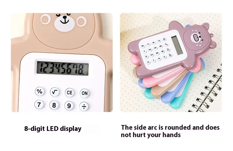 The Cartoon Bear Calculator Student Mini-Portable is not only a functional calculator but also a fun and engaging tool that makes learning math exciting. Its adorable design and simple functionality make it perfect for students of all ages, especially young learners who are just starting to use calculators. Compact, easy to use, and practical, this calculator is an ideal tool for school, home, or travel, providing both utility and a bit of joy in your everyday calculations.