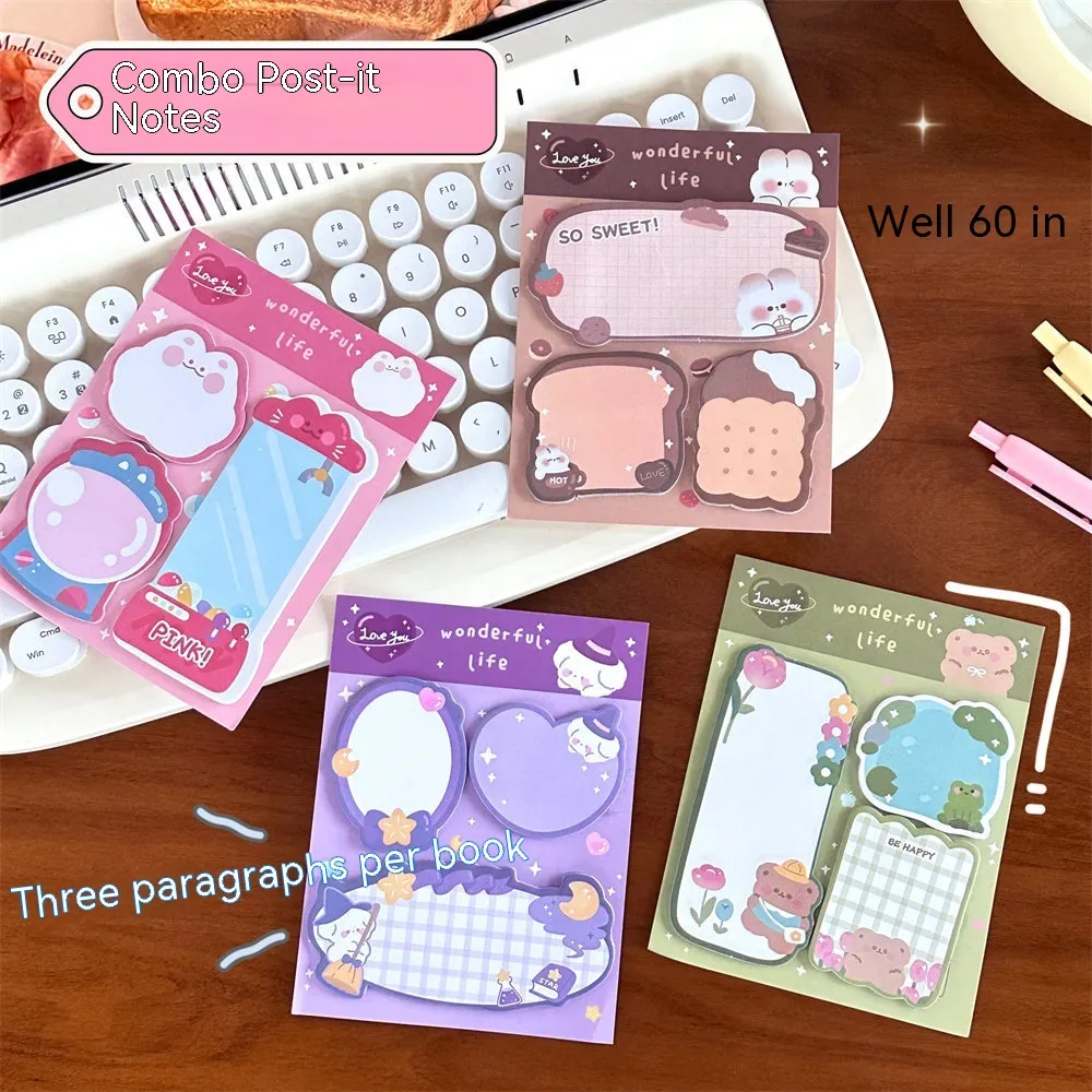 The Cartoon Combination Sticky Notes Girly Style Creative Message Special-shaped Stickers are the ideal choice for anyone who wants to combine fun with function. Their cute and playful designs help to add personality to your notes and reminders, making them perfect for students, planners, or anyone who loves creative stationery. With their high-quality paper, unique special shapes, and sticky adhesive, these notes provide both style and practicality, making them a must-have for your stationery collection.