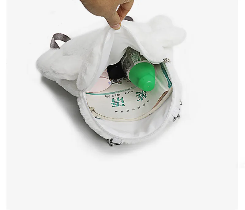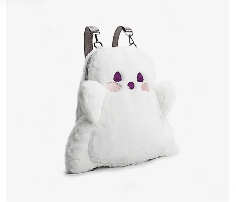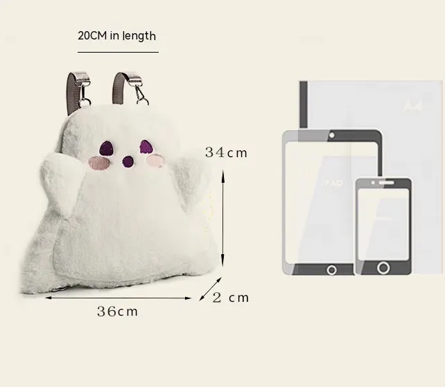 The Cartoon Cute White Ghost Face Doll Plush Backpack may be small in size, but it’s large enough to carry your essentials
