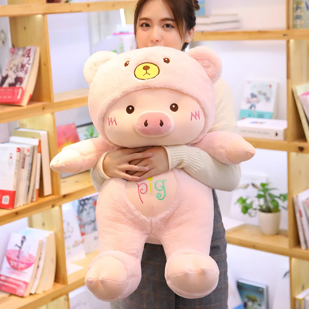 Adorable and Soft Cartoon Plush Teddy Bear Hat Pig Doll