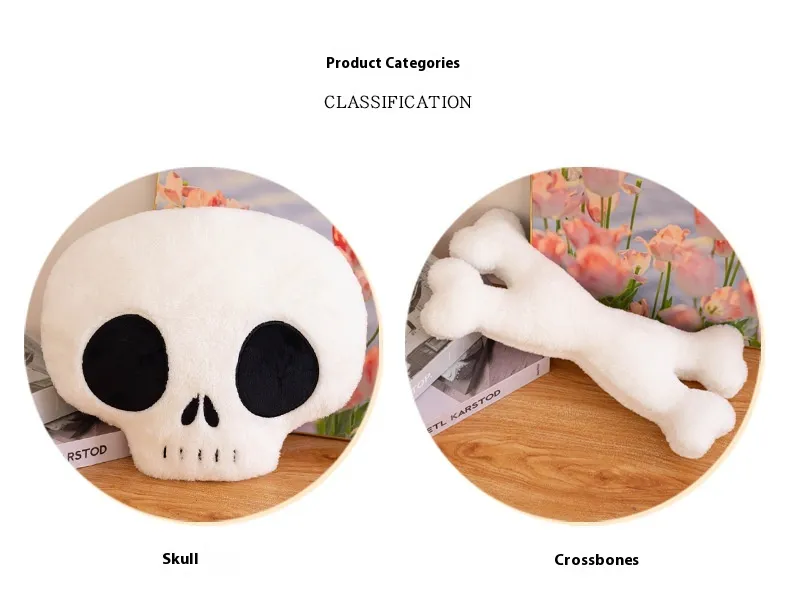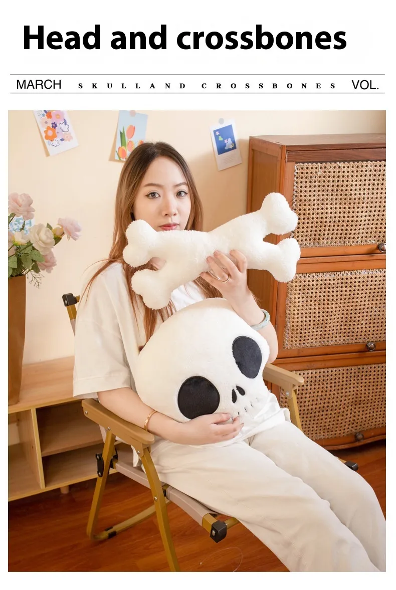 The Cartoon Skull Bone Pillow Plush Toy Doll is a unique and fun addition to any plush toy collection. Designed with a playful cartoon skull