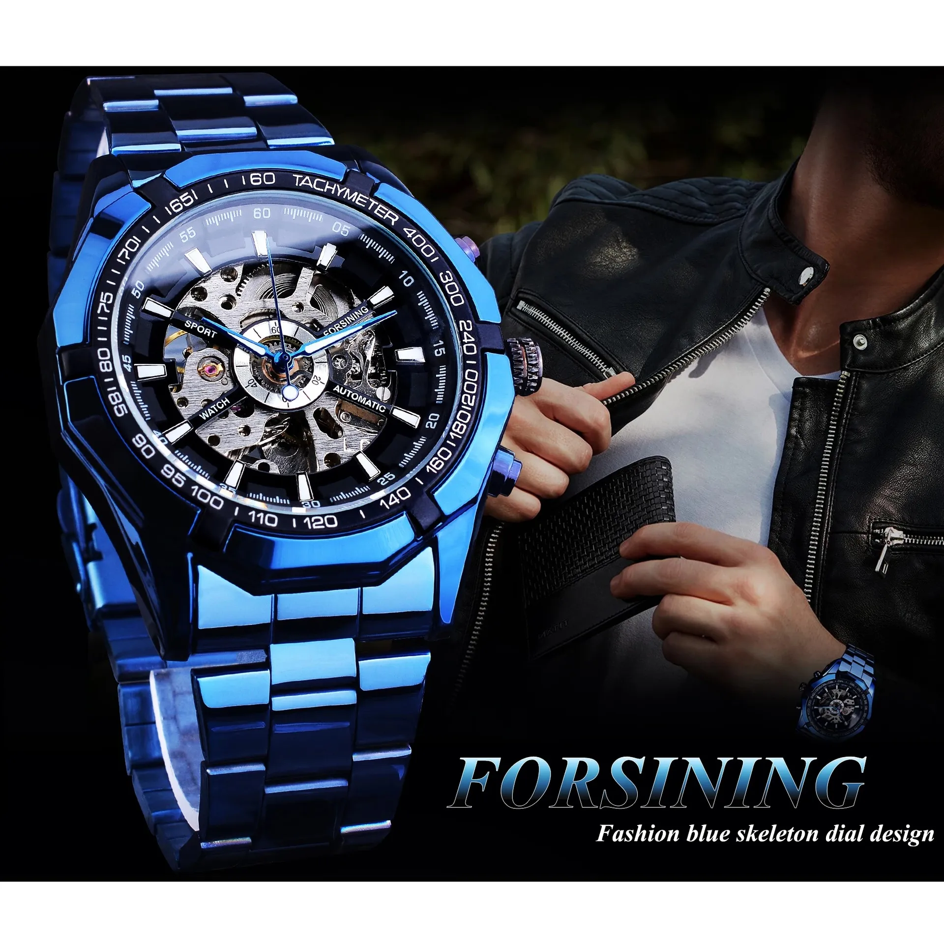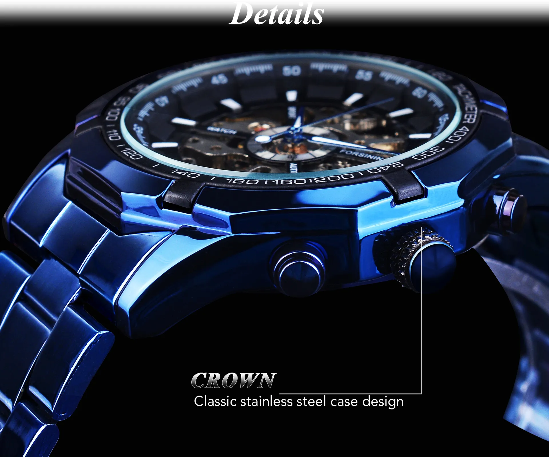 Casual Hollow Blue Plating Automatic Mechanical Watch: A Blend of Style and Engineering