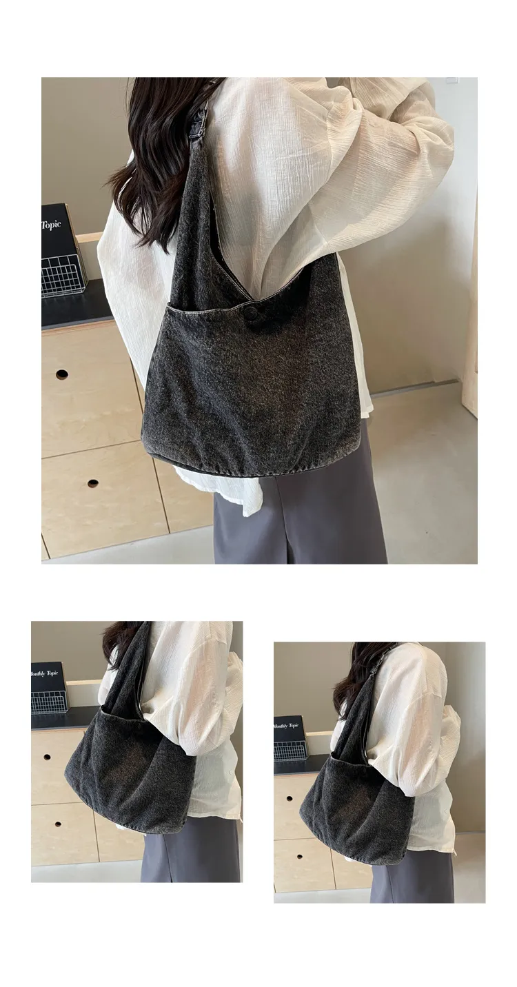 Ideal for New Zealand women who want a practical yet stylish bag, this large capacity denim shoulder tote is the perfect everyday accessory.