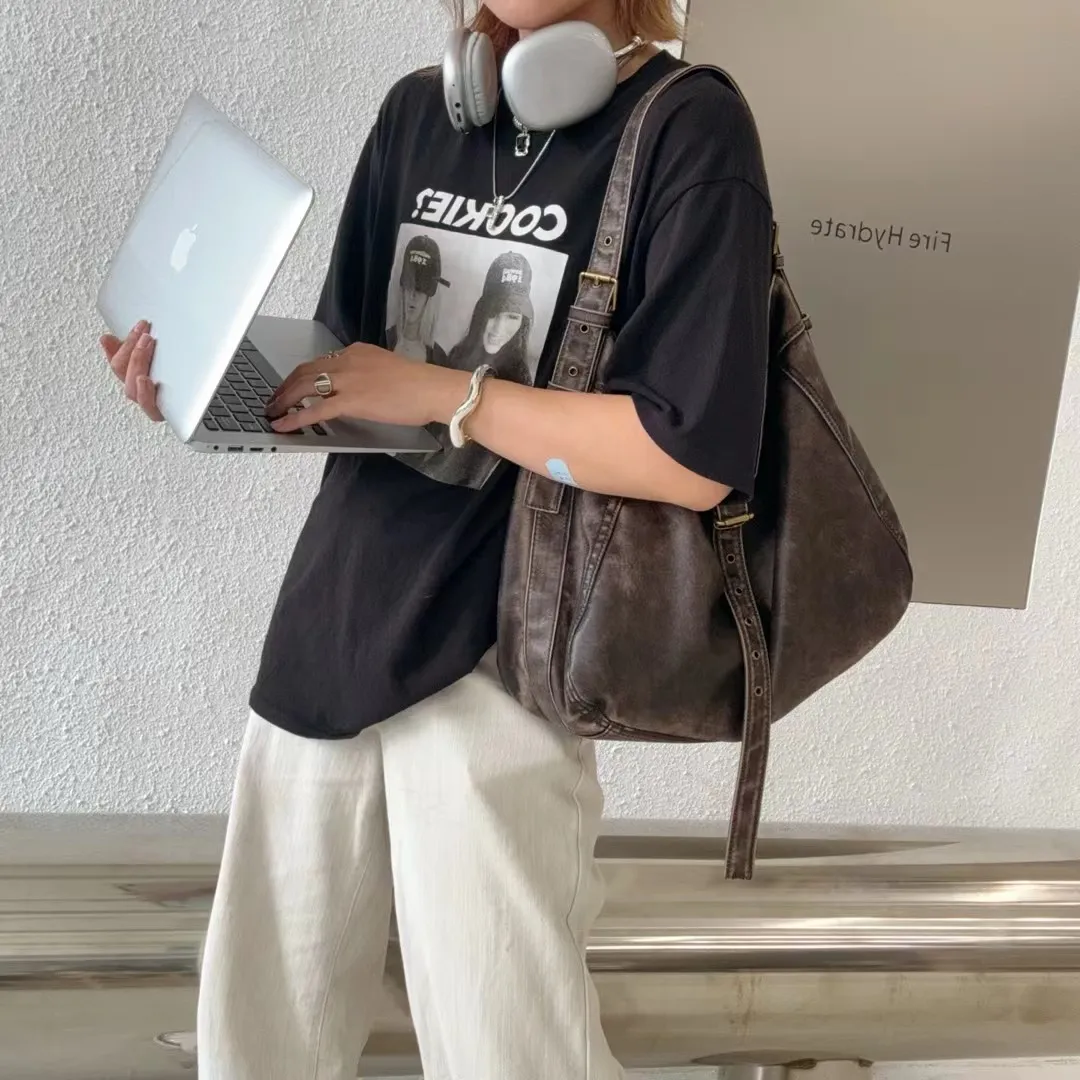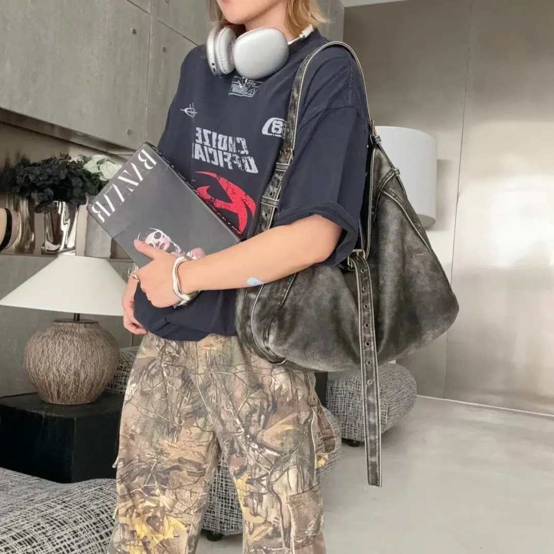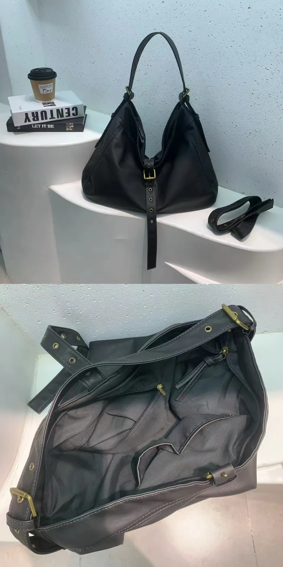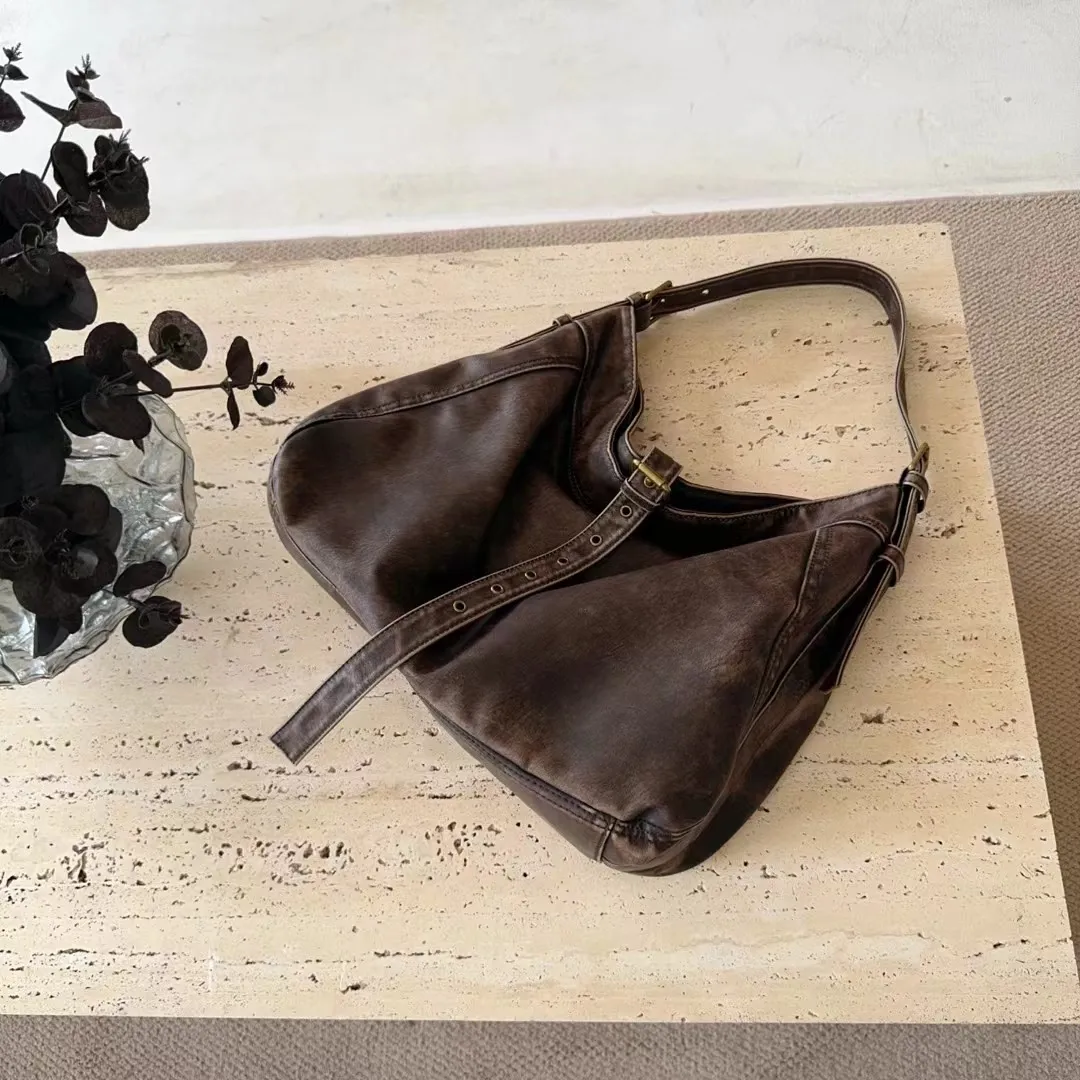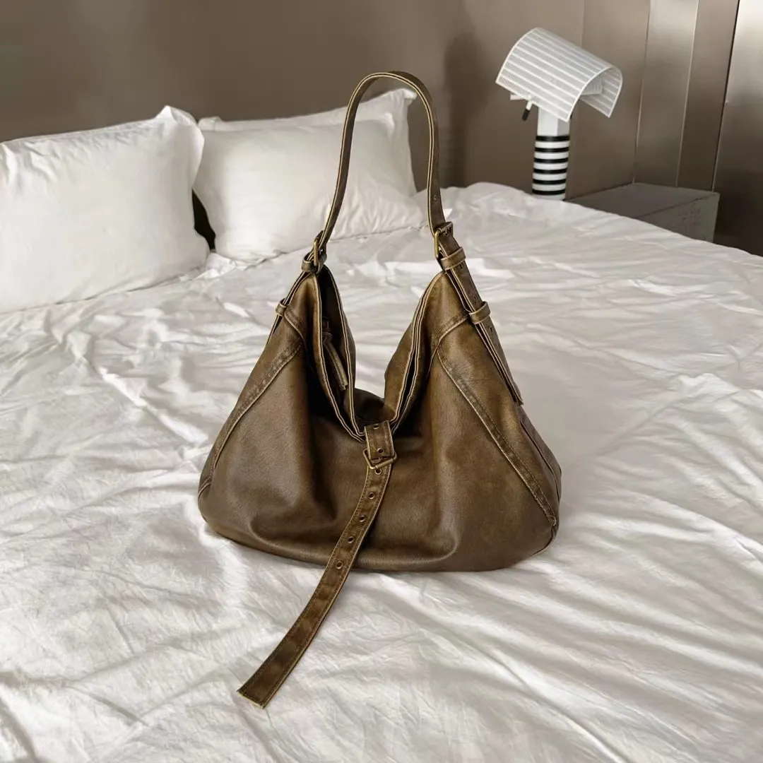Casual Large Capacity Shoulder Crossbody Belt Buckle Underarm Tote Bag