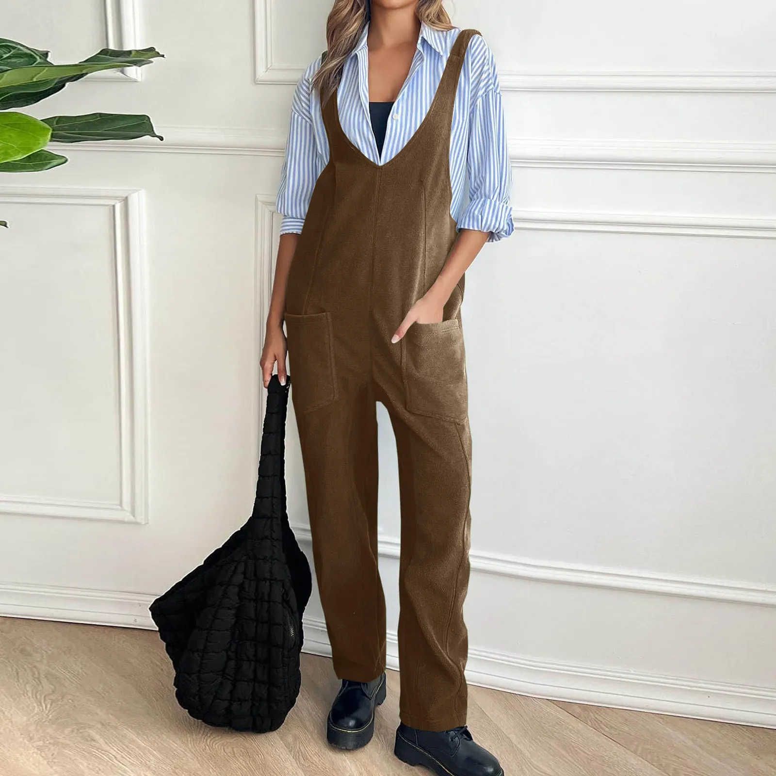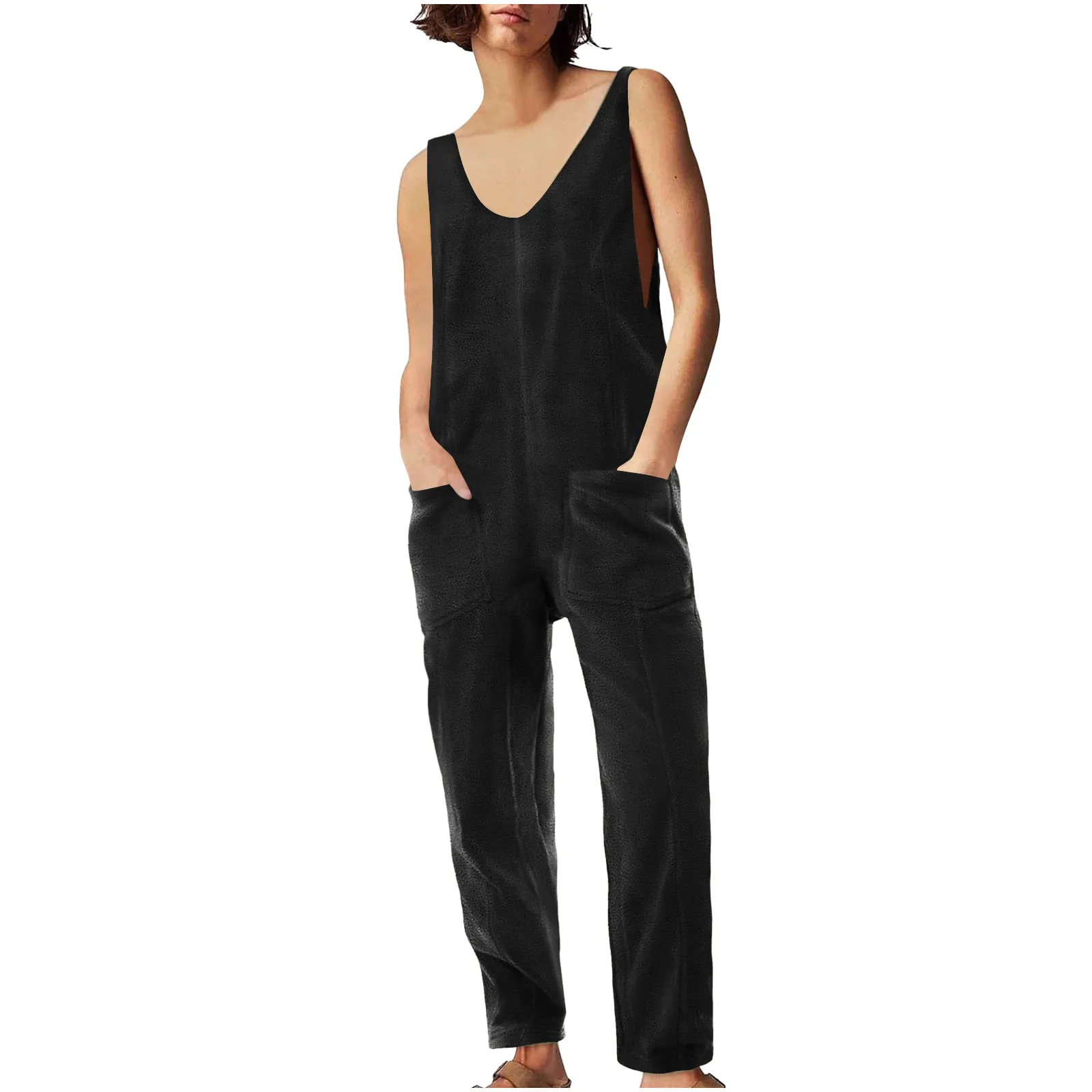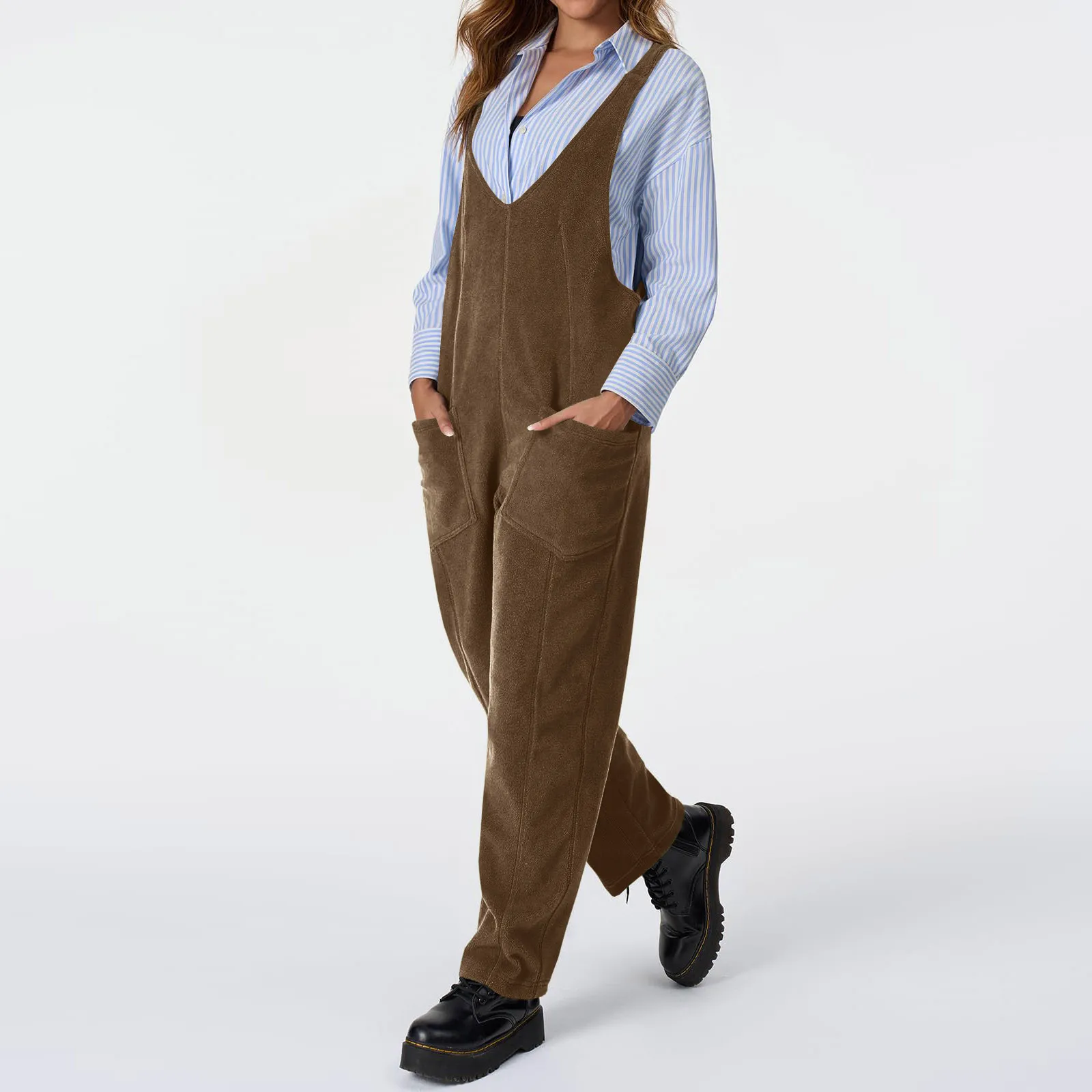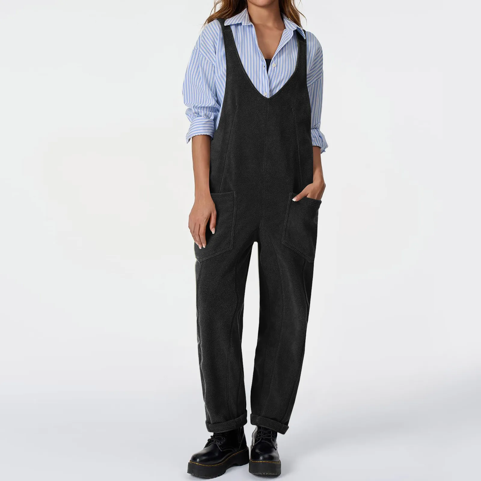 Casual Suspender Trousers Polar Fleece Tooling Style Jumpsuit