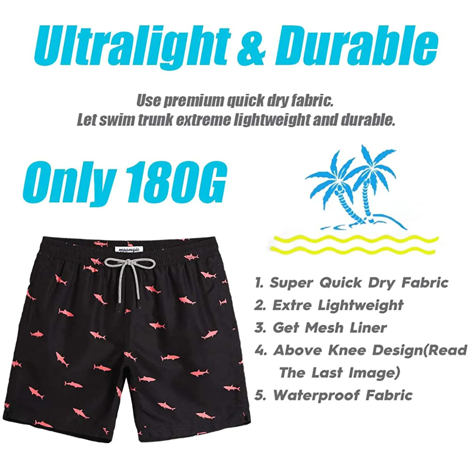 Equipped with an elastic waistband and drawstring, these shorts offer a customizable fit that stays secure during active moments, whether you're surfing, playing beach volleyball, or simply relaxing in the sun.