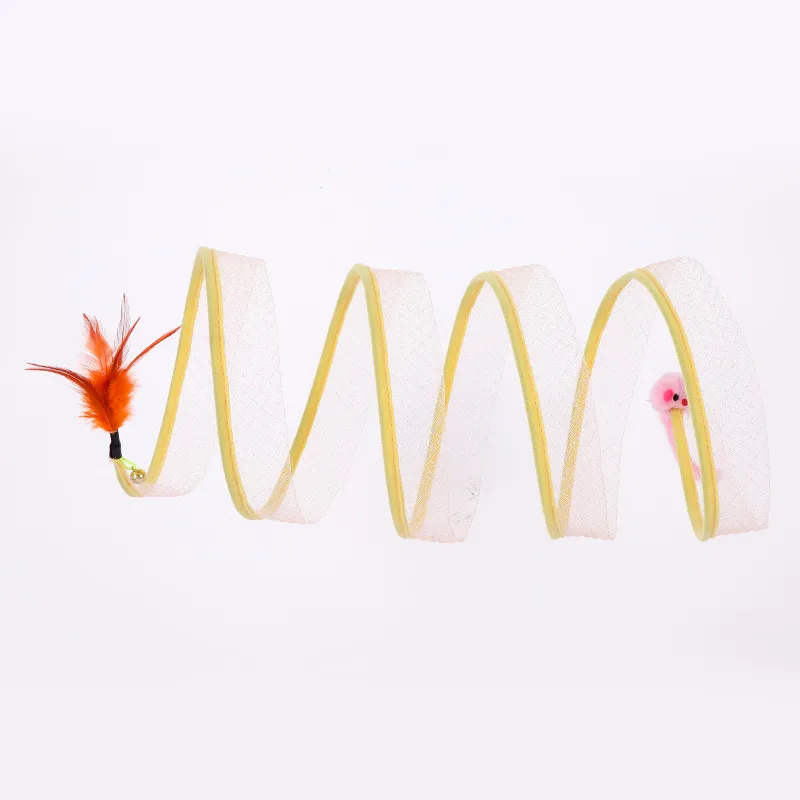 Material: steel wire, elastic mesh, feather, plush mouse, sisal hemp ball