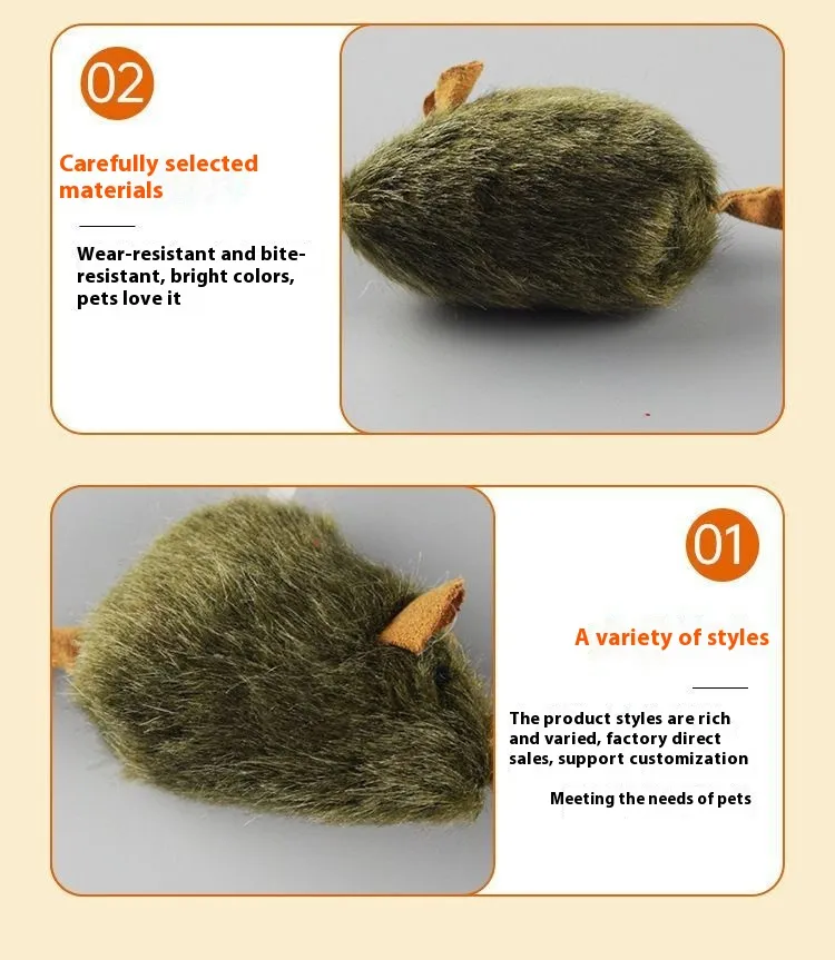 Every cat deserves the best playtime experience, and the Cat Toy Plush Simulation Sound Little Mouse is the perfect toy to keep your feline friend engaged and entertained for hours. Designed to simulate the sound and movement of a real mouse, this plush cat toy is sure to capture your cat's attention and encourage natural hunting instincts. Whether you're looking to provide enrichment for your pet or simply need a fun and interactive toy to keep them busy, the simulation sound little mouse toy is an ideal choice for cats of all ages.