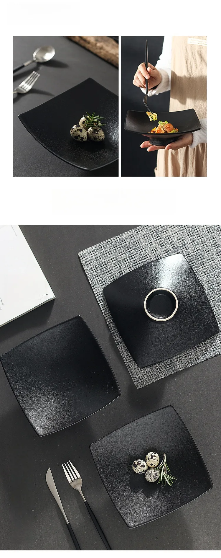 Ceramic Frosted Plate Japanese-style Square High Leg Dinner Plate: The Perfect Blend of Elegance and Functionality