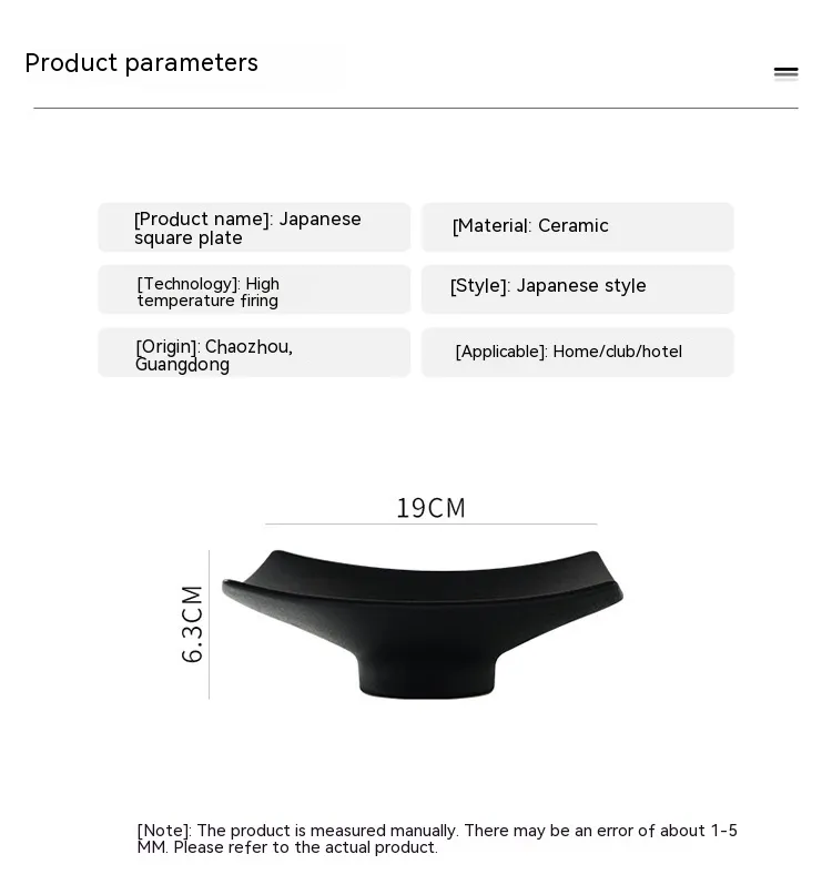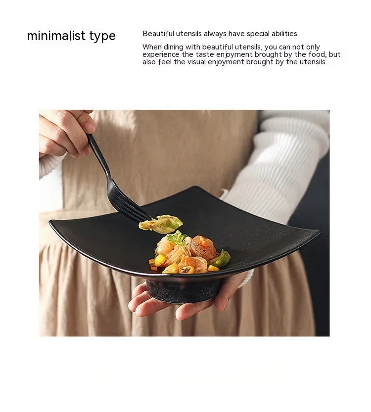 This dinner plate draws inspiration from the elegance of traditional Japanese tableware. Its minimalist square shape, combined with raised high legs, adds a touch of Zen to your dining experience. This design not only enhances the aesthetic appeal of your food but also provides an elevated platform for your dishes, giving a sense of sophistication to your table setting.