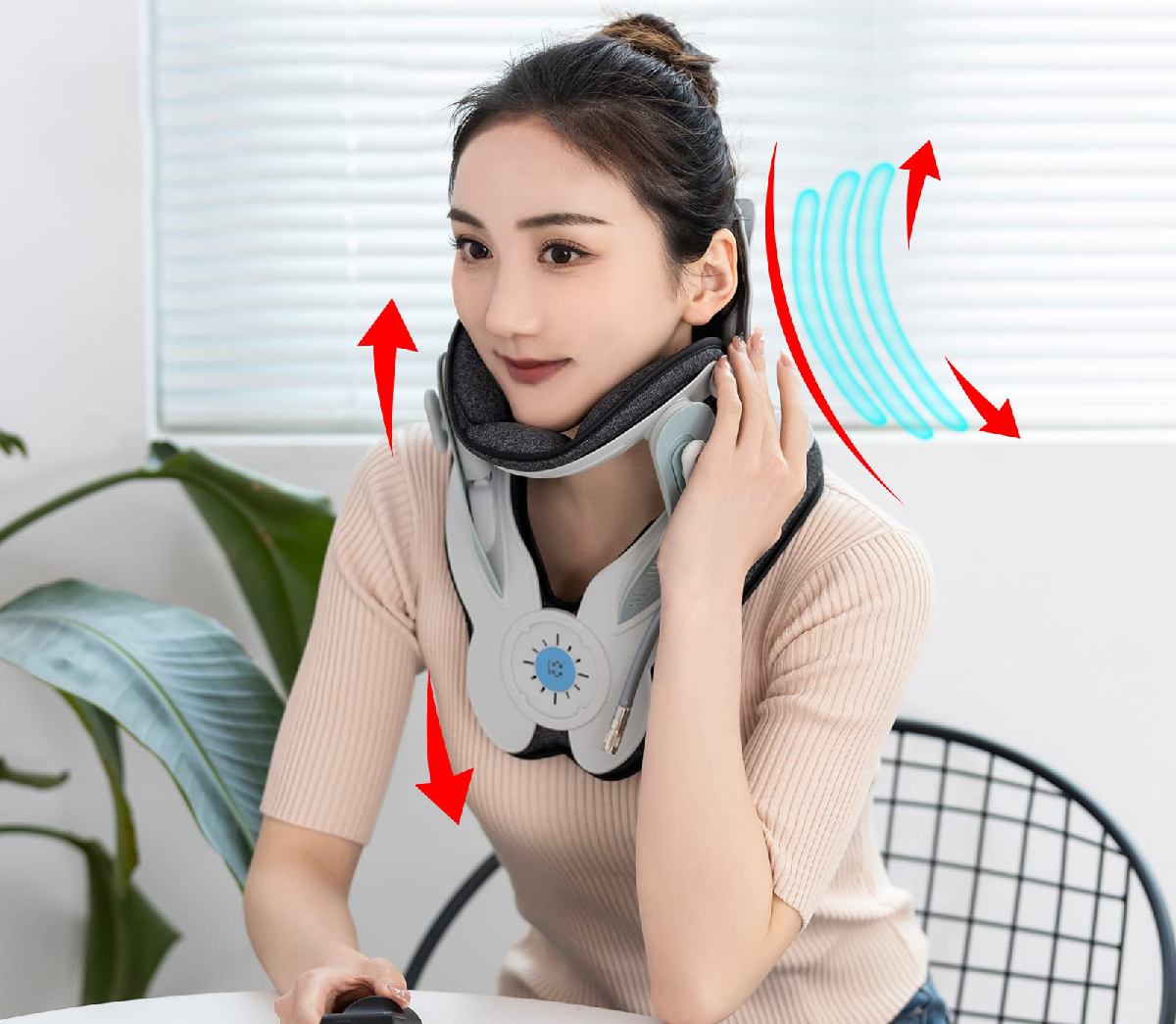The cervical traction collar works by gently stretching the neck to alleviate pressure on the vertebrae, thereby reducing pain associated with bulging discs and cervical muscle tension. The collar’s electric pump system allows users to adjust the level of traction with precision, providing a customized therapeutic experience. It helps open up the spaces where nerves exit the spinal canal, relieving nerve compression and allowing healing nutrients to flow more effectively into the affected areas.